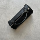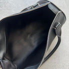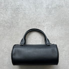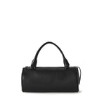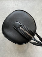 Round top handle bag in finely grained calfskin leather with exposed zipper and magnetic closure.