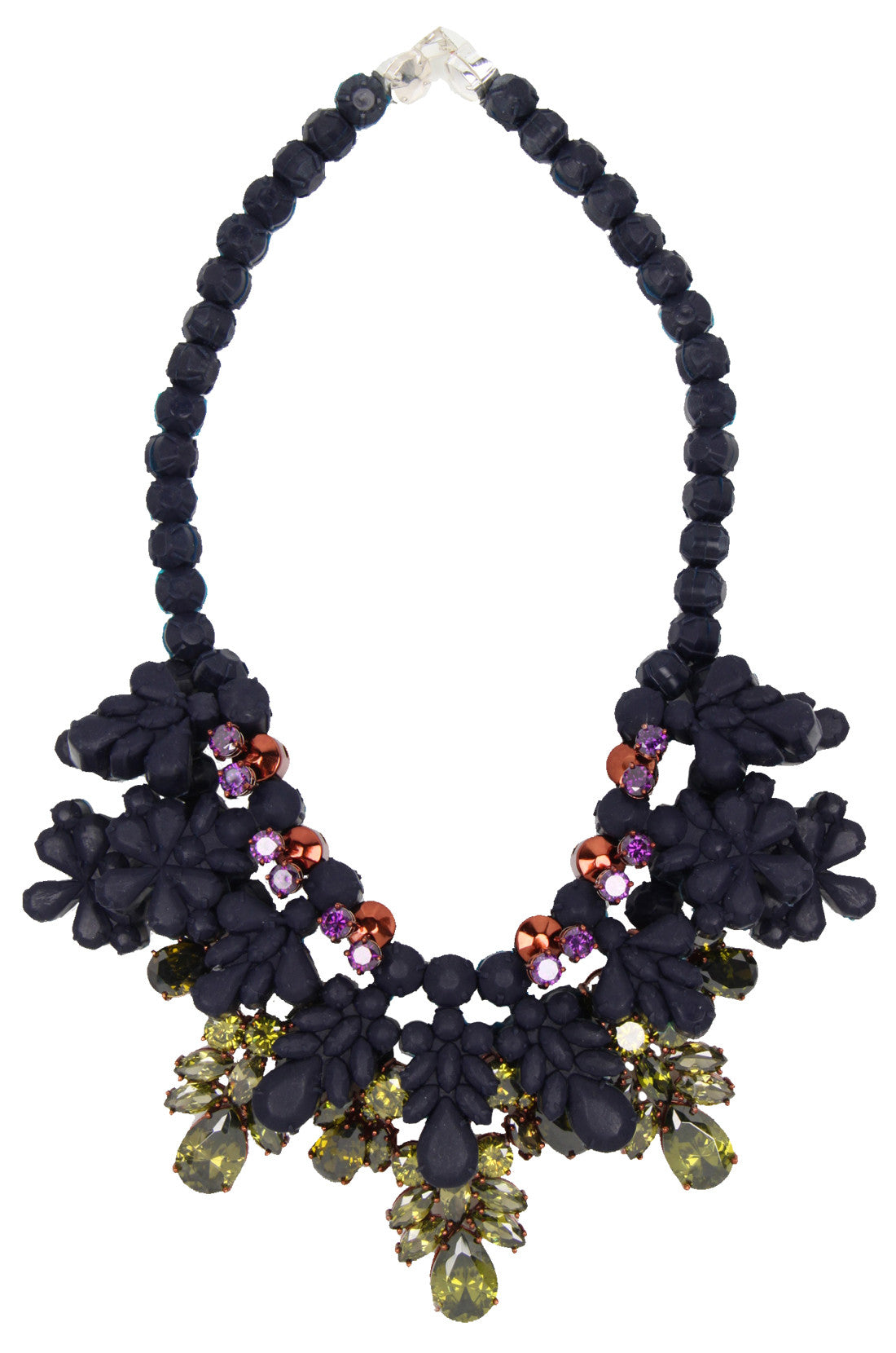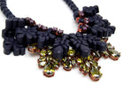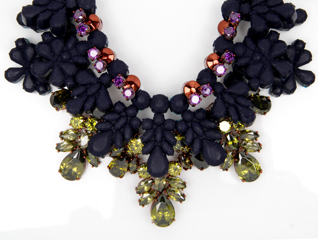 Colour:Blue with Olive and Purple Cubic zirconia and Brown Plated Metal.