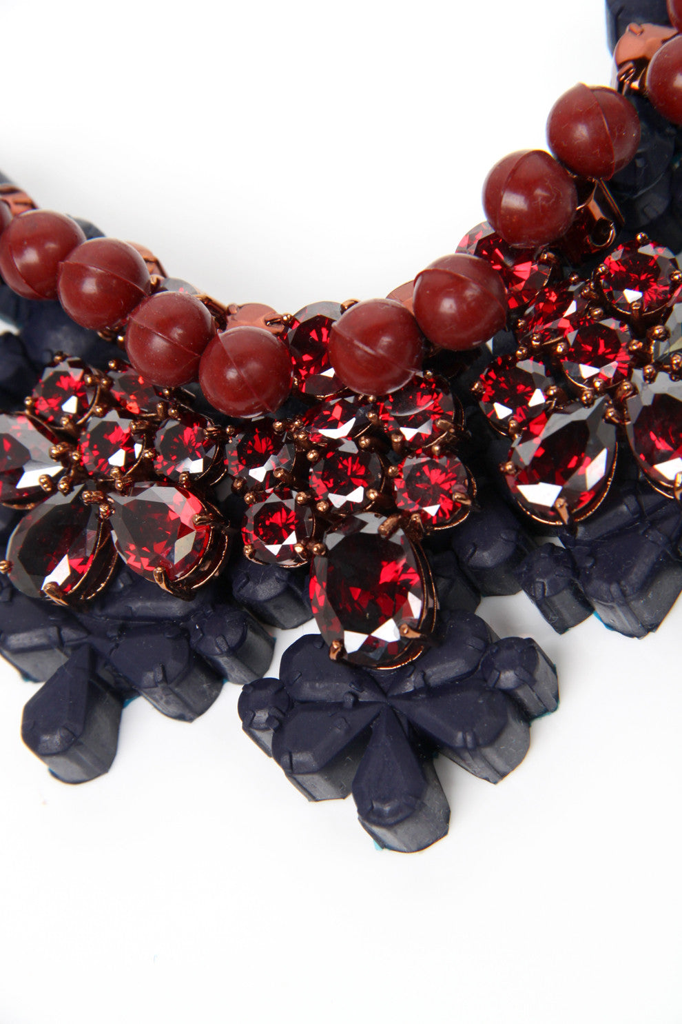 Colour:Blue with garnet Cubic zirconia and brown Plated Metal.