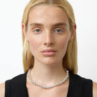 Named after both our grandmothers who coincidentally both are named Elly. Inspired by their heirloom pearl necklaces they have worn for as long as we can remember. Made from silver-plated brass and comfortably lightweight due to the beads hollowed construction. Pair it with the matching Elly bracelet.