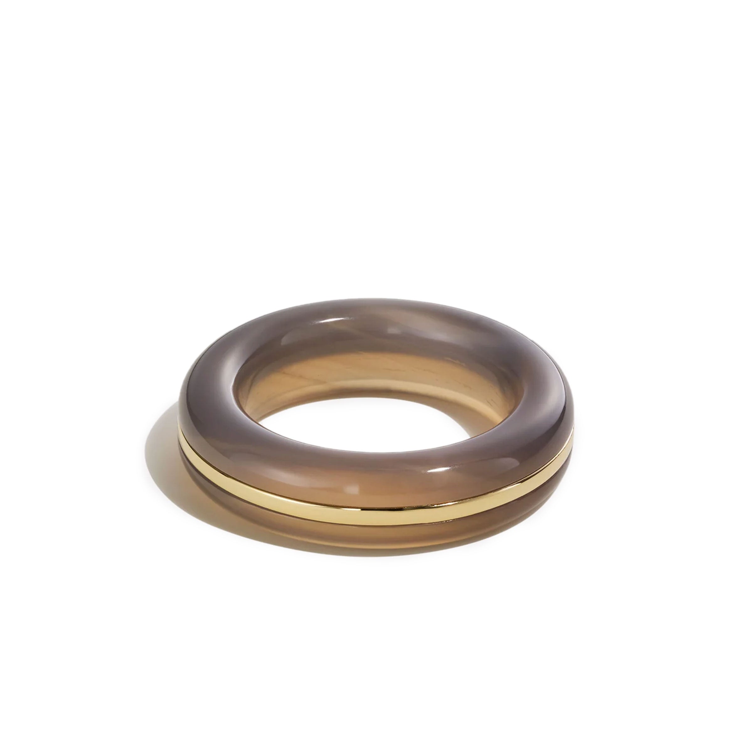 Our signature Essential Stacking Ring, carved from Grey Agate. Set in 14K recycled 14K gold.