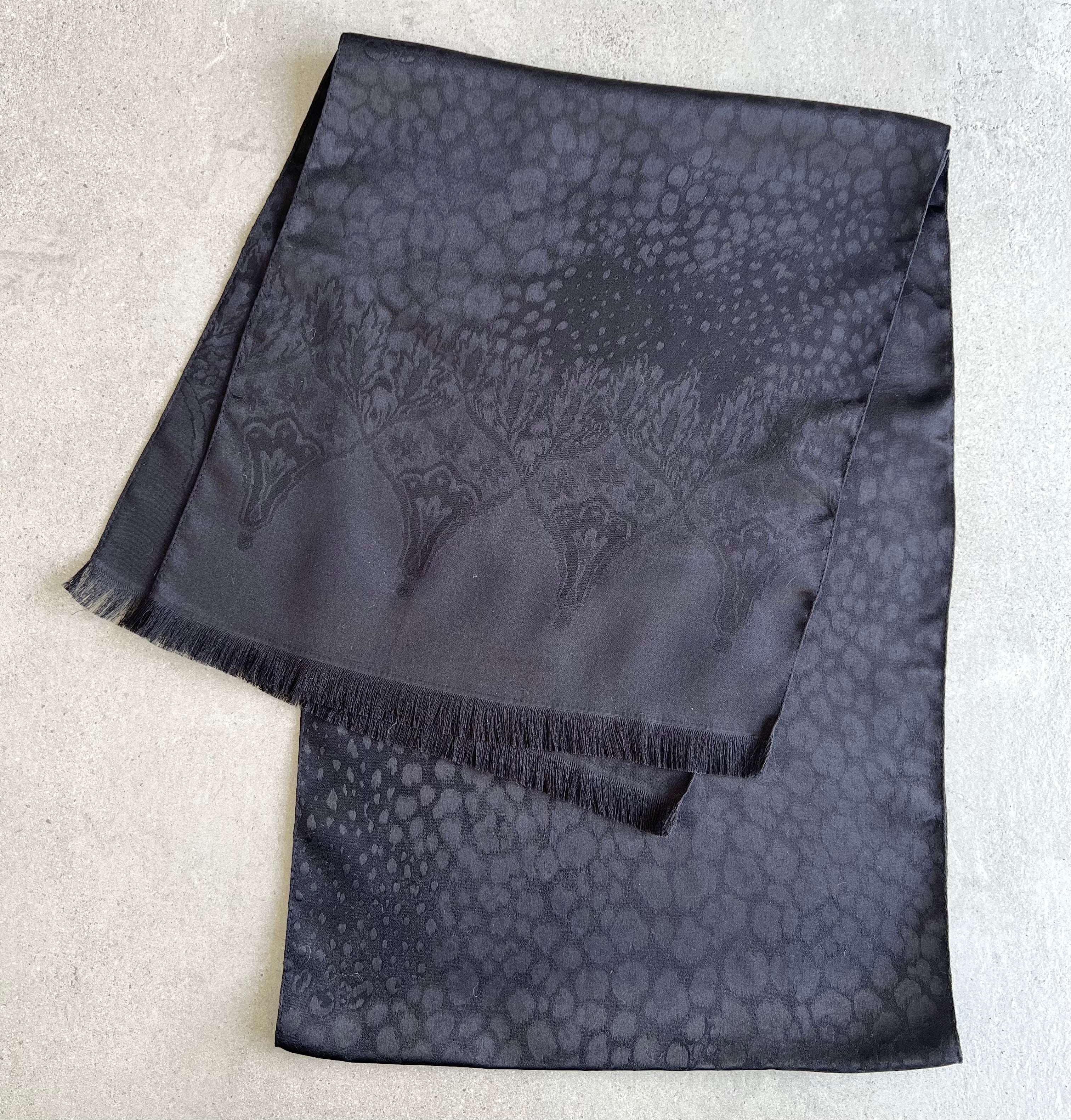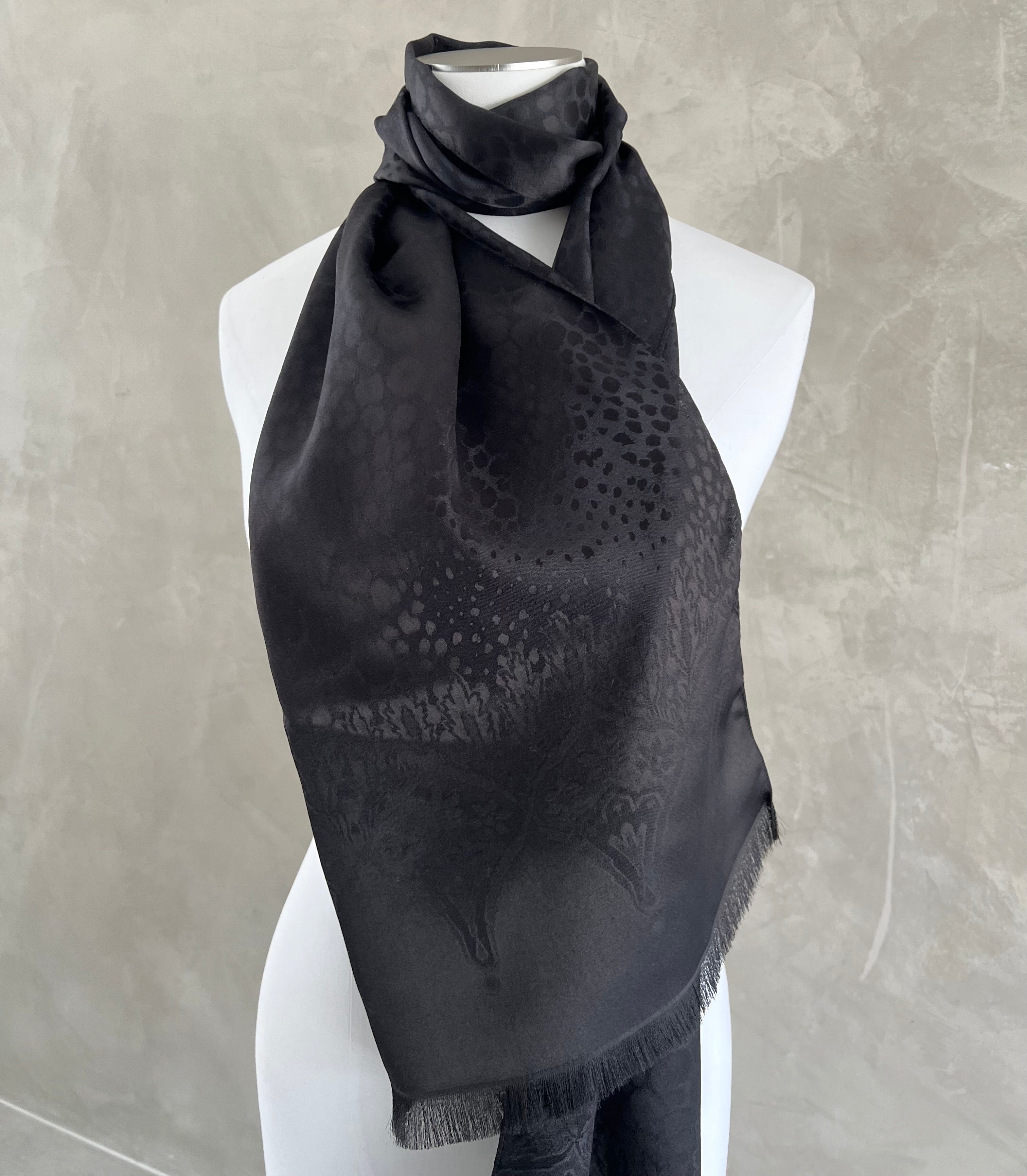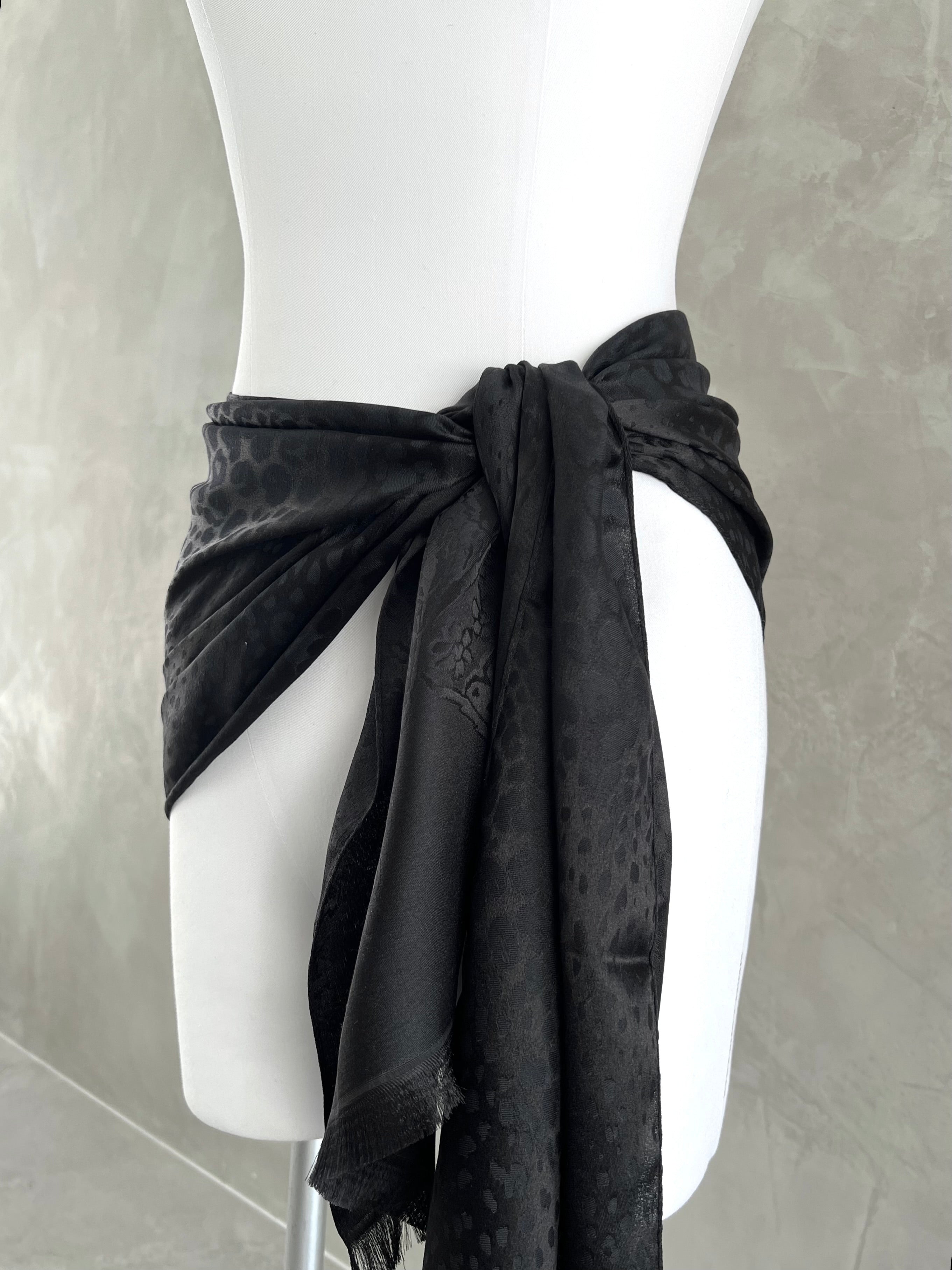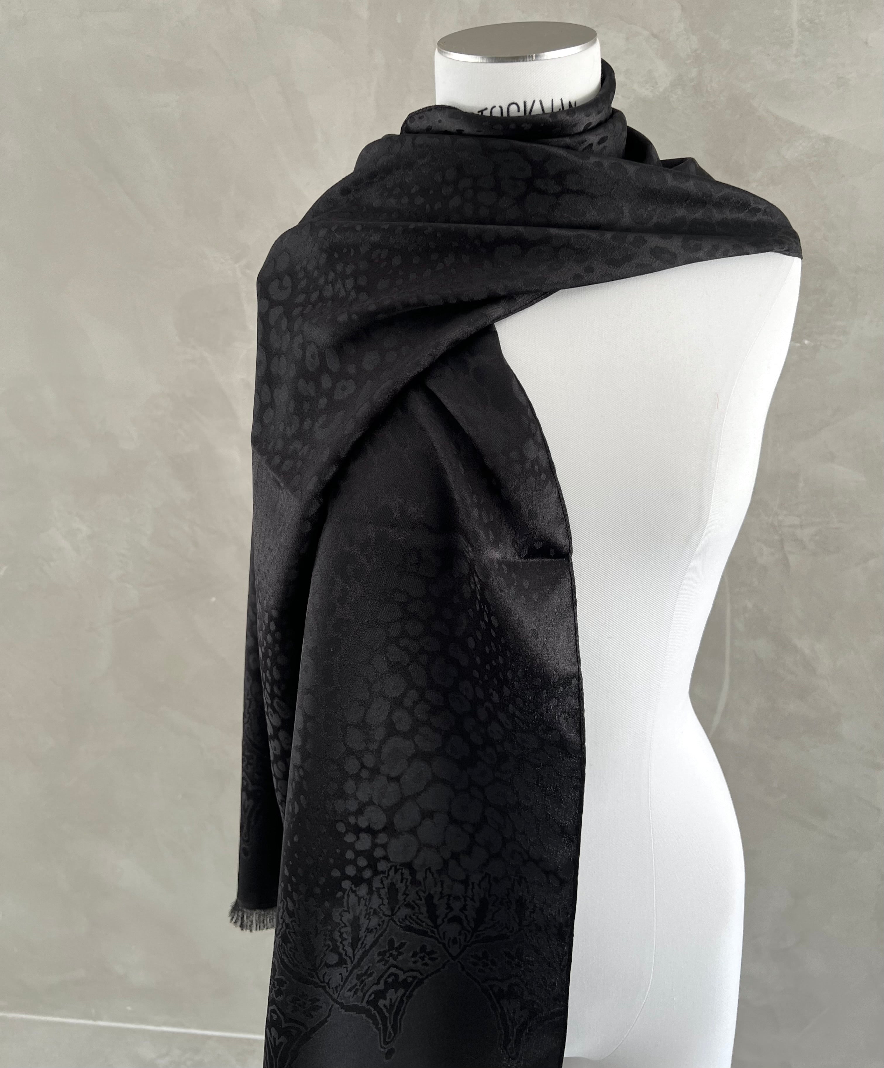 Tonal Leoapard Paisley Scarf 35x180, Black