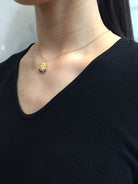 Yellow gold plated necklace featuring a sterling silver evil eye pendant with a white central; diamond. The base of the charm is adorned with ruby zoisite crystals to mimic tears from the eye.
