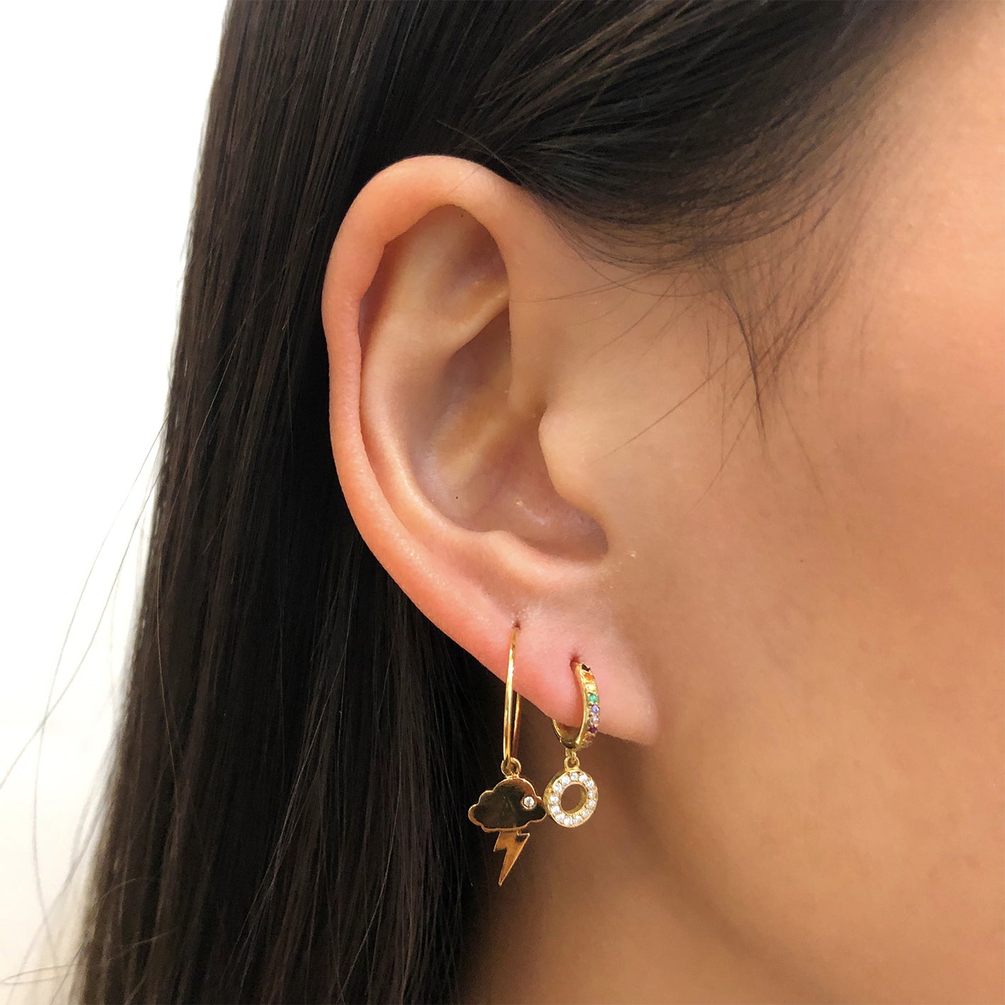 Mini storm hoop earrings in yellow gold plating with Zircon details.