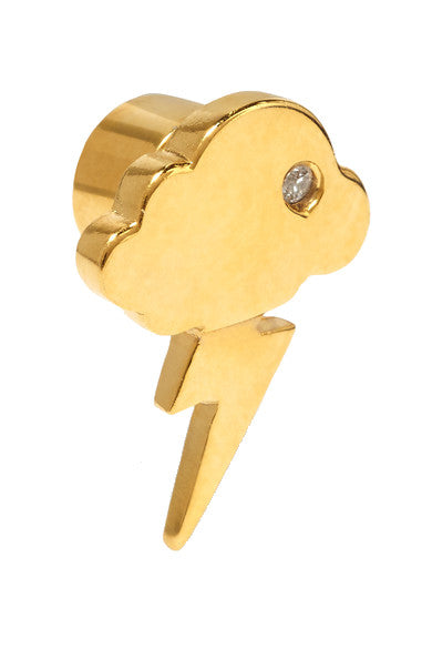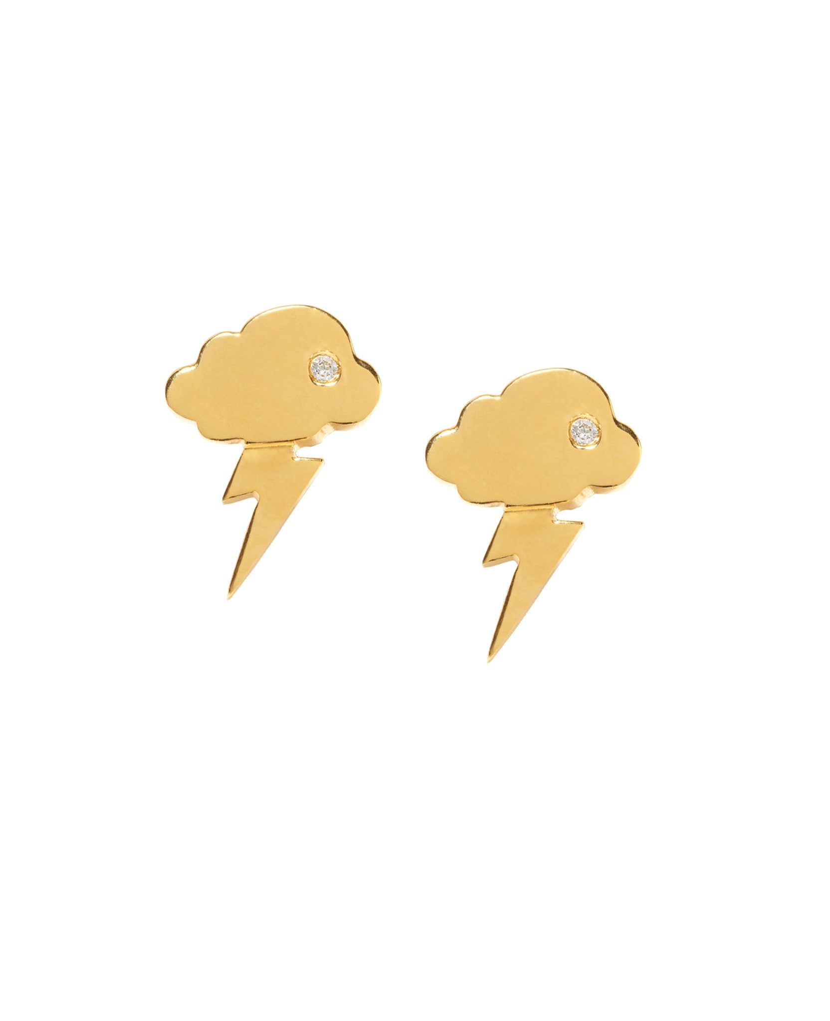 These gold-plated silver earrings resemble stormy clouds and lightning bolts and are embellished with a single glittering Zircon.