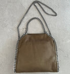 Elevate everyday dressing with this iconic Stella McCartney Falabella Tiny tote bag. Responsibly made from our signature grained Shaggy Deer fabric, this vegan tote bag is framed by a recycled brass and recyclable aluminium diamond-cut chain and is lined with recycled materials. There’s a slip pocket inside for smaller items, while the main compartment is roomy enough for keys, a phone and lipstick.