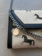 The iconic Falabella Clutch/cross body bag updated with a Horses Jacquard Fabric.