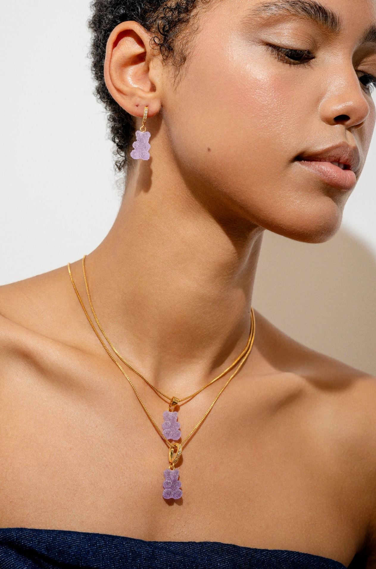 Fizzy Bear Pendant, Crystal Gold Connector