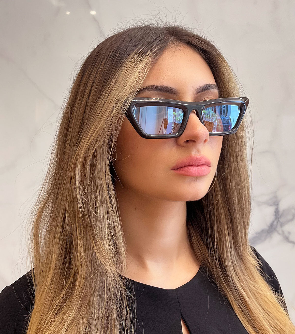 The TWENTY TWO takes a vintage cat-eye in a modern direction. It features a slim rectangular silhouette and sharp, wide temples. Crafted from 5mm cellulose Italian Mazzucchelli acetate and completed with CR-39 Japanese lenses that offer 100% UVA/ UVB protection.