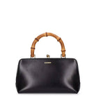 Mini calf leather bag with metal frame detail and embossed Jil Sander logo. Bamboo handle with enamelled finishing and clutch closure with goji berry detail. Nappa lining with one interior zipped pocket and detachable strap. Foil embossed Jil Sander logo.