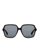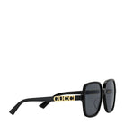 This pair of rectangular-frame sunglasses are reminiscent of retro styles from the '70s. Reimagined through the Gucci lens, this black acetate style has a contemporary feel. The word 'Gucci' appears as a bold gold-toned detail, decorating the temples as a pronounced nod to the House.