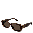 Rectangular frame in havana with Gucci engraved logo. This version is flattering on smaller faces with a low nose bridge.
