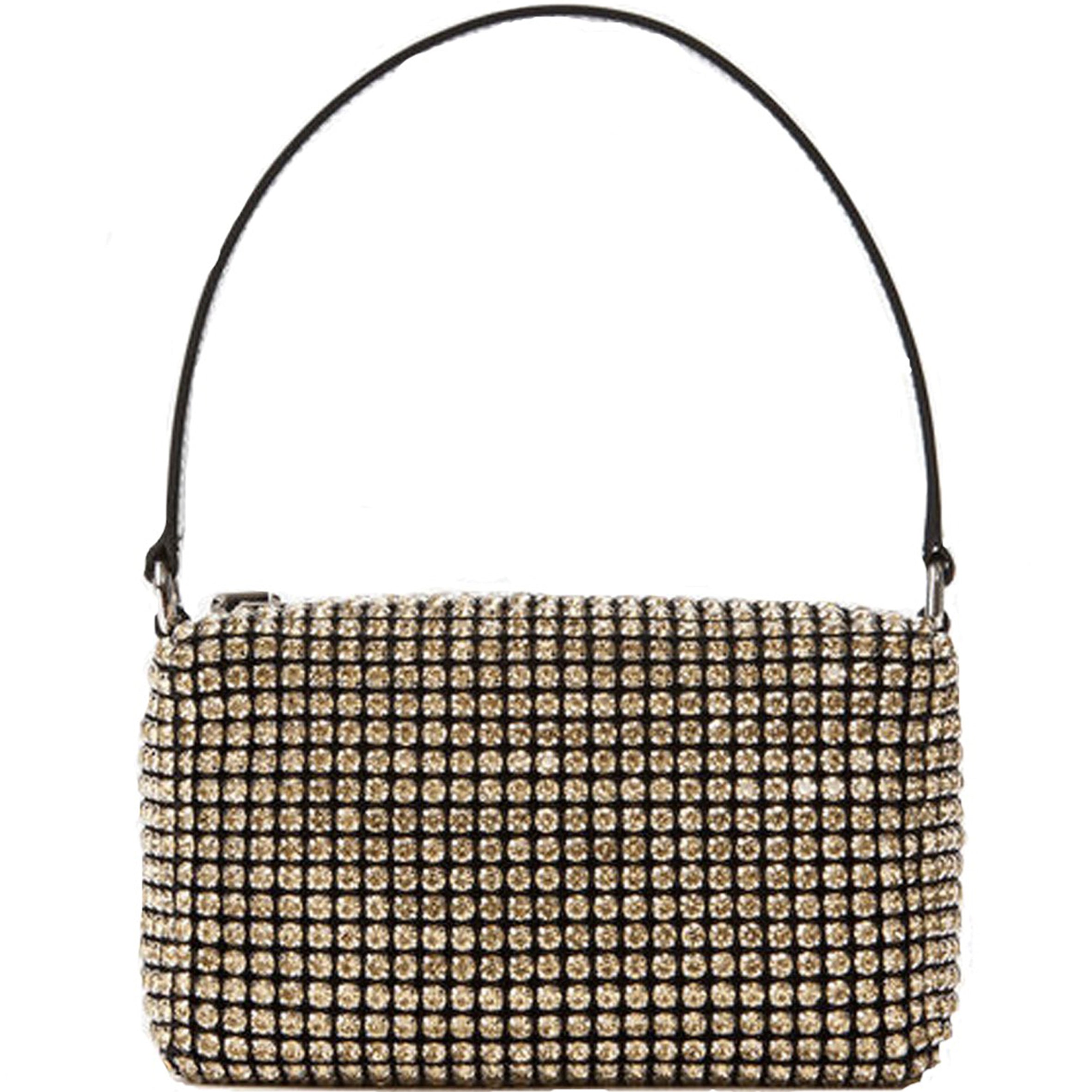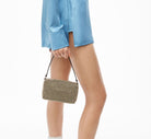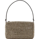 This medium pouch features crystal glass rhinestone embellishments and a statement zipper. The interior lining is made from nylon with an interior card slot. The handle is imprinted with the logo.