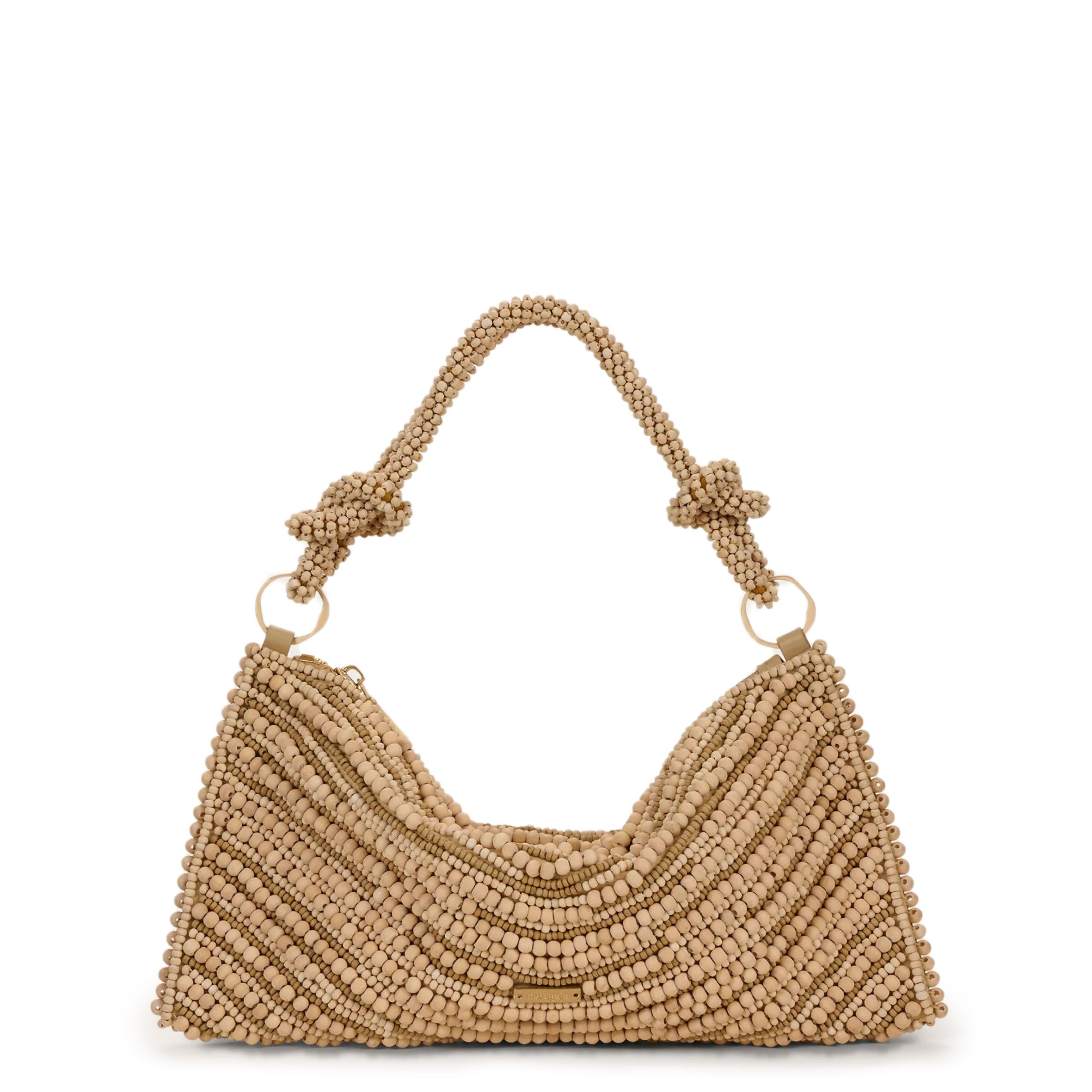 A classic nano sized bag designed in a natural wooden beads that sits as a relaxed silhouette on your shoulder.