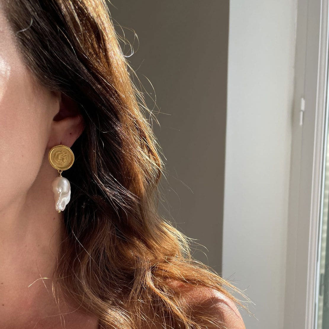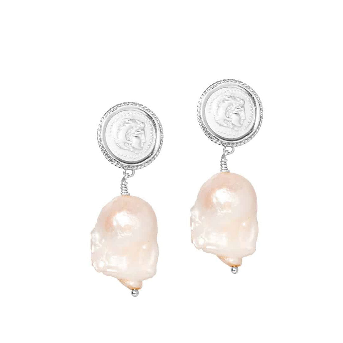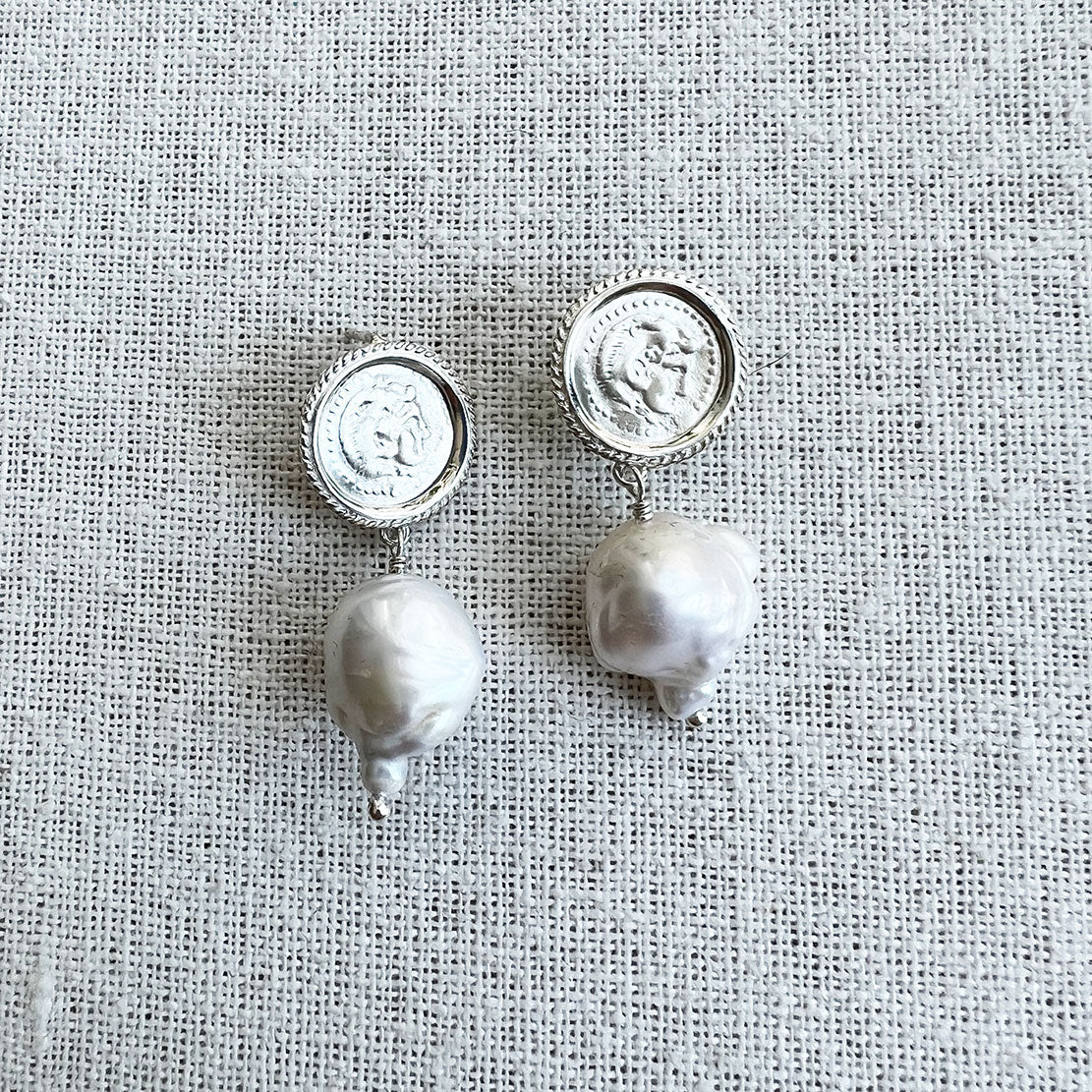 Fresh water cultured baroque pearl earrings. Stirling silver with butterfly fastening for pierced ears.