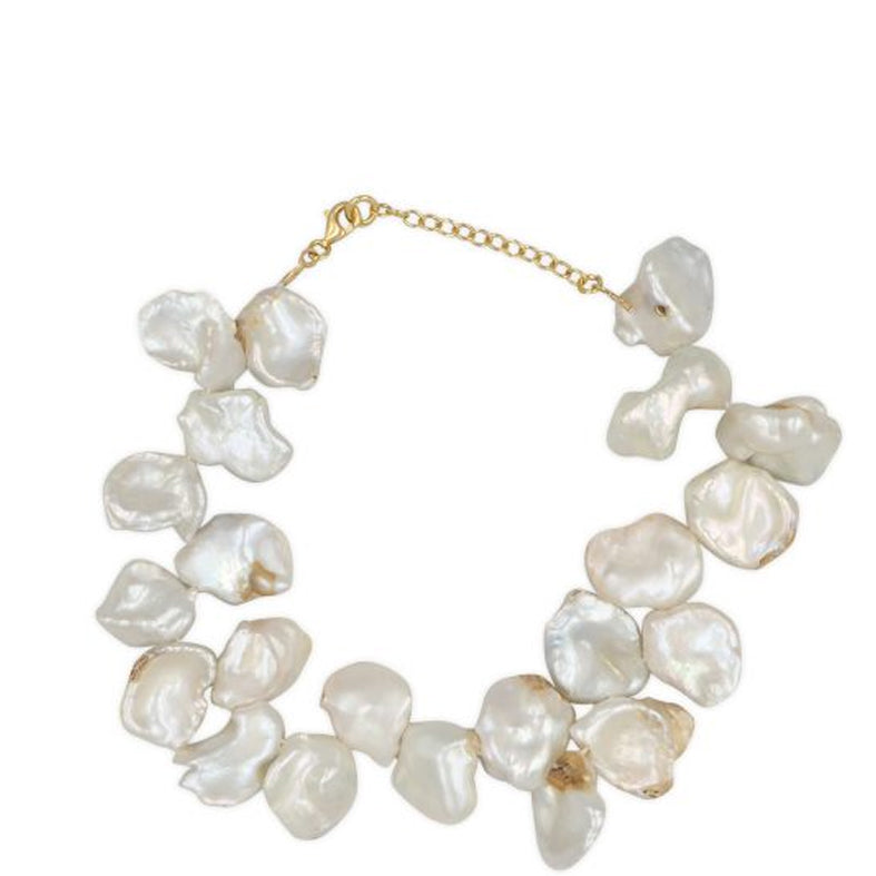 The Fisiki Pear Anklet is constructed with gold-plated sterling silver and decorated with beautiful fresh water pearls.
