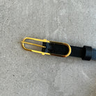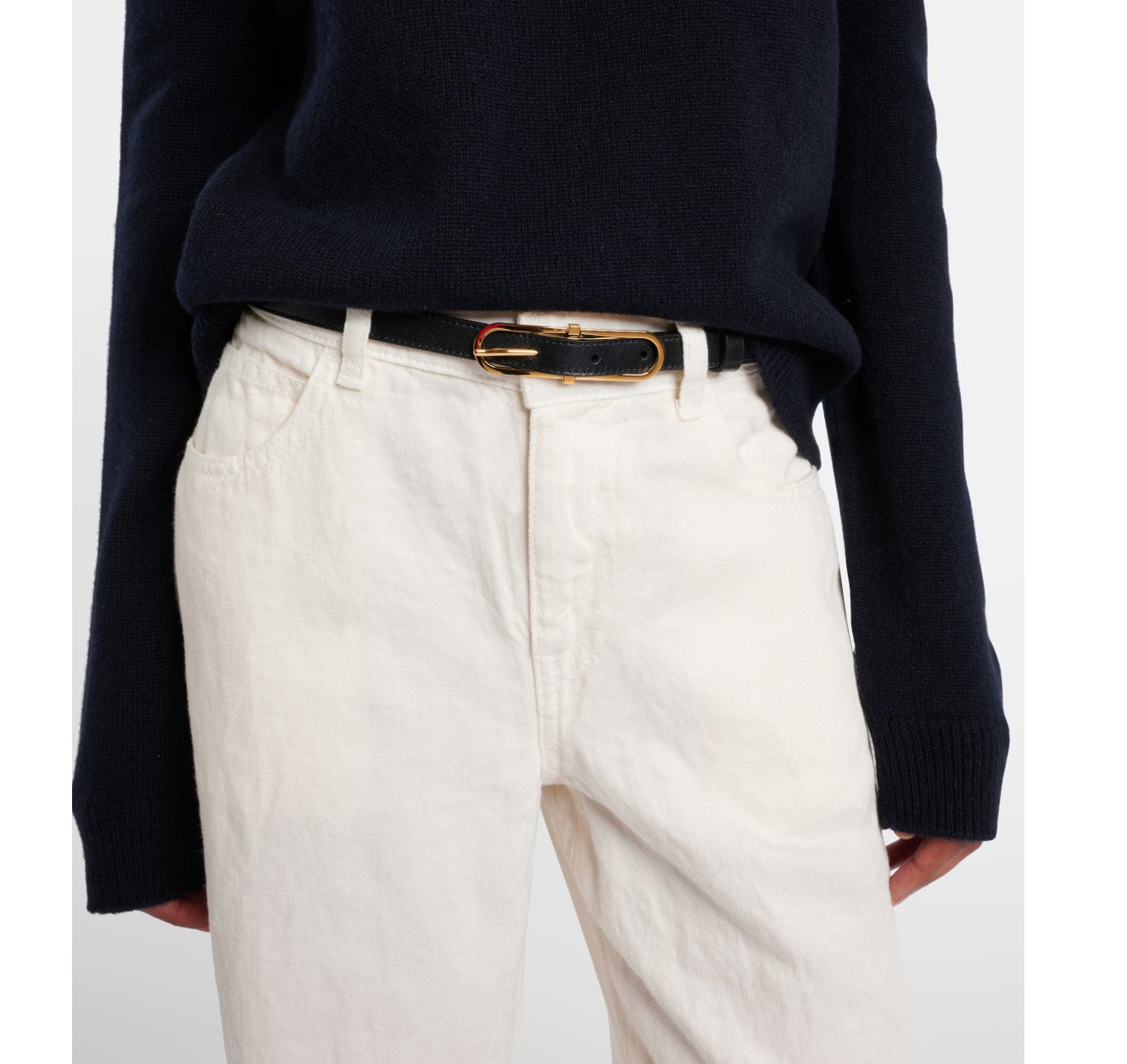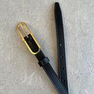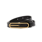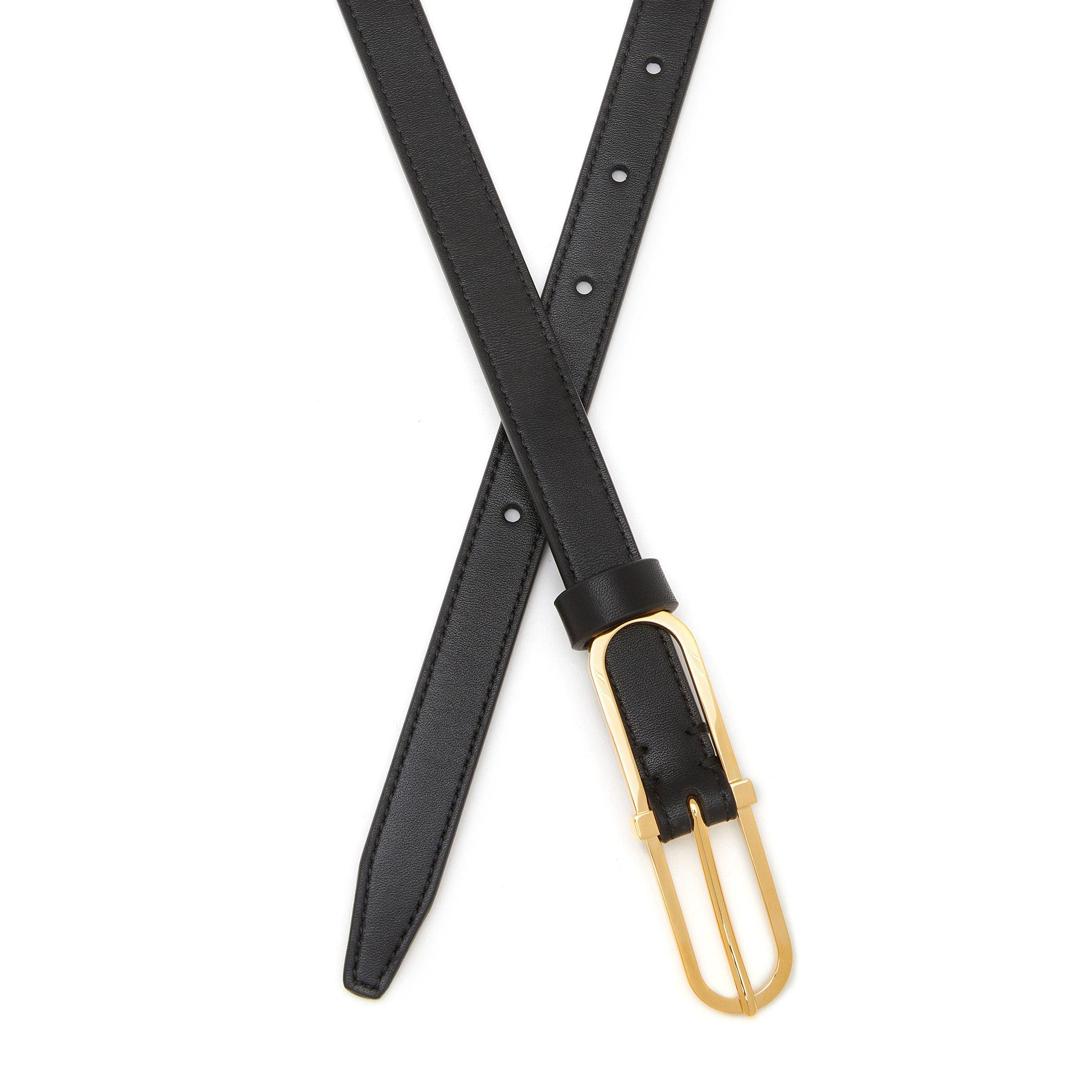 Slim belt in smooth leather with metal buckle and fixed loop.