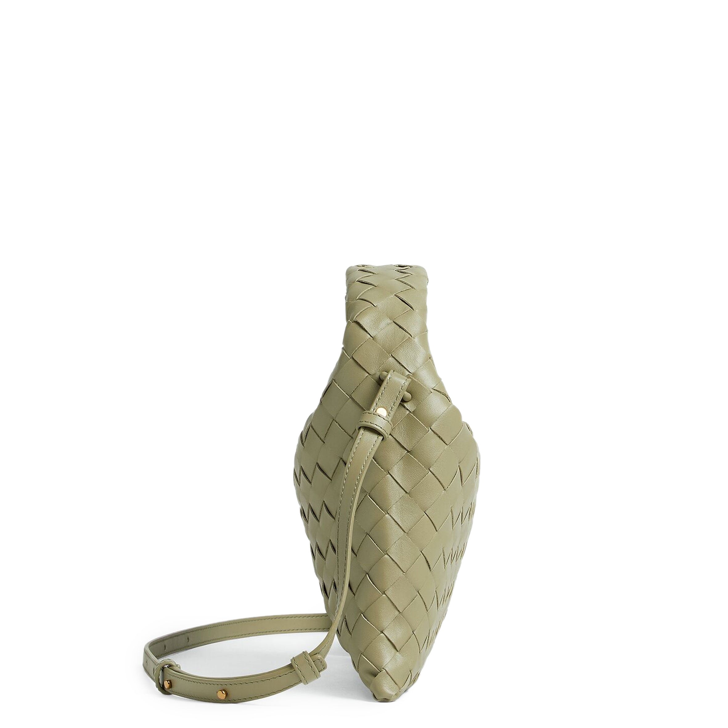 Mini Intrecciato leather crossbody bag. The latest to the Hop family, the new mini size has a detachable and adjustable cross-body long leather strap. A little tall and wider than the Mini Jodie, this is a great day to night option.
