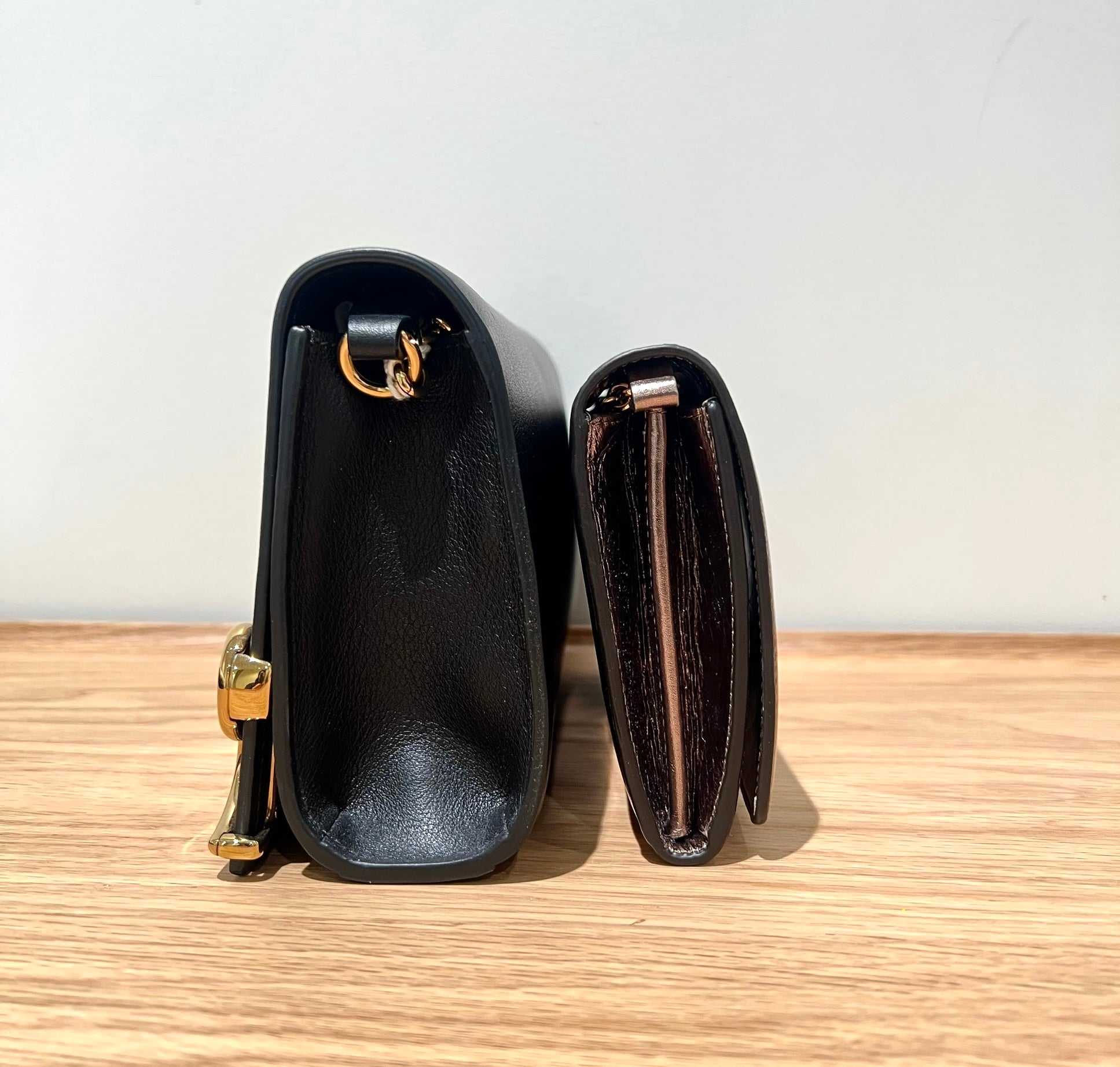 This flap wallet is made from soft metallic leather which may create smooth or light halos. If the leather gets wet, dry it with a soft white cloth to absorb water. With use, the leather may become marked and shiny.