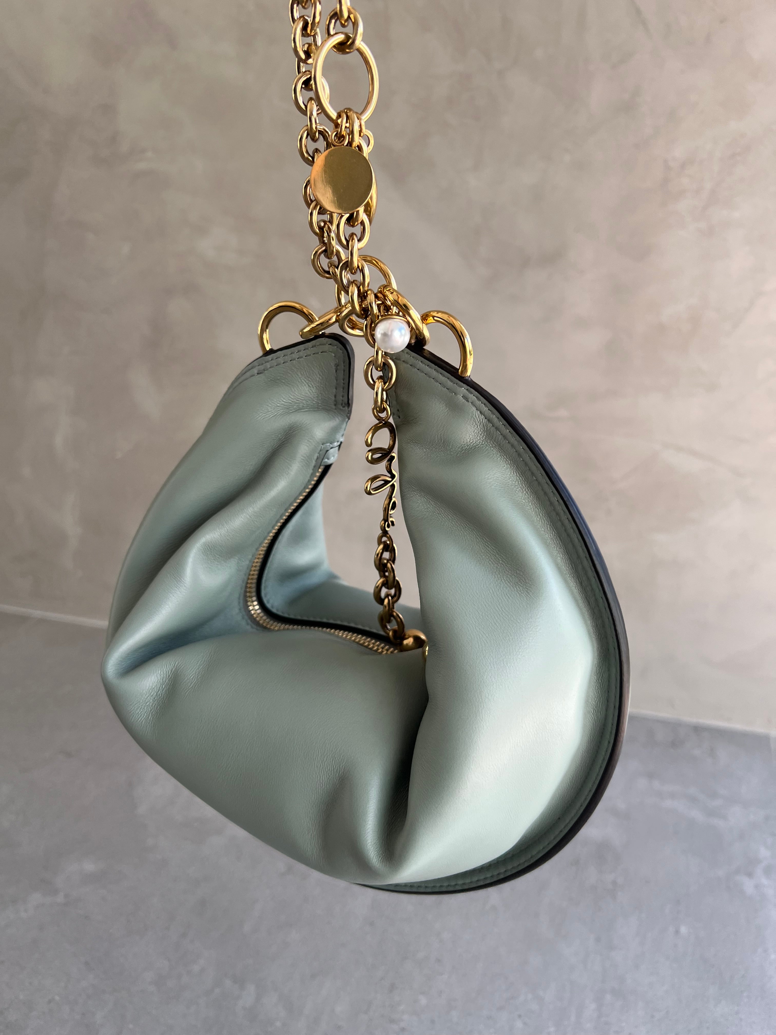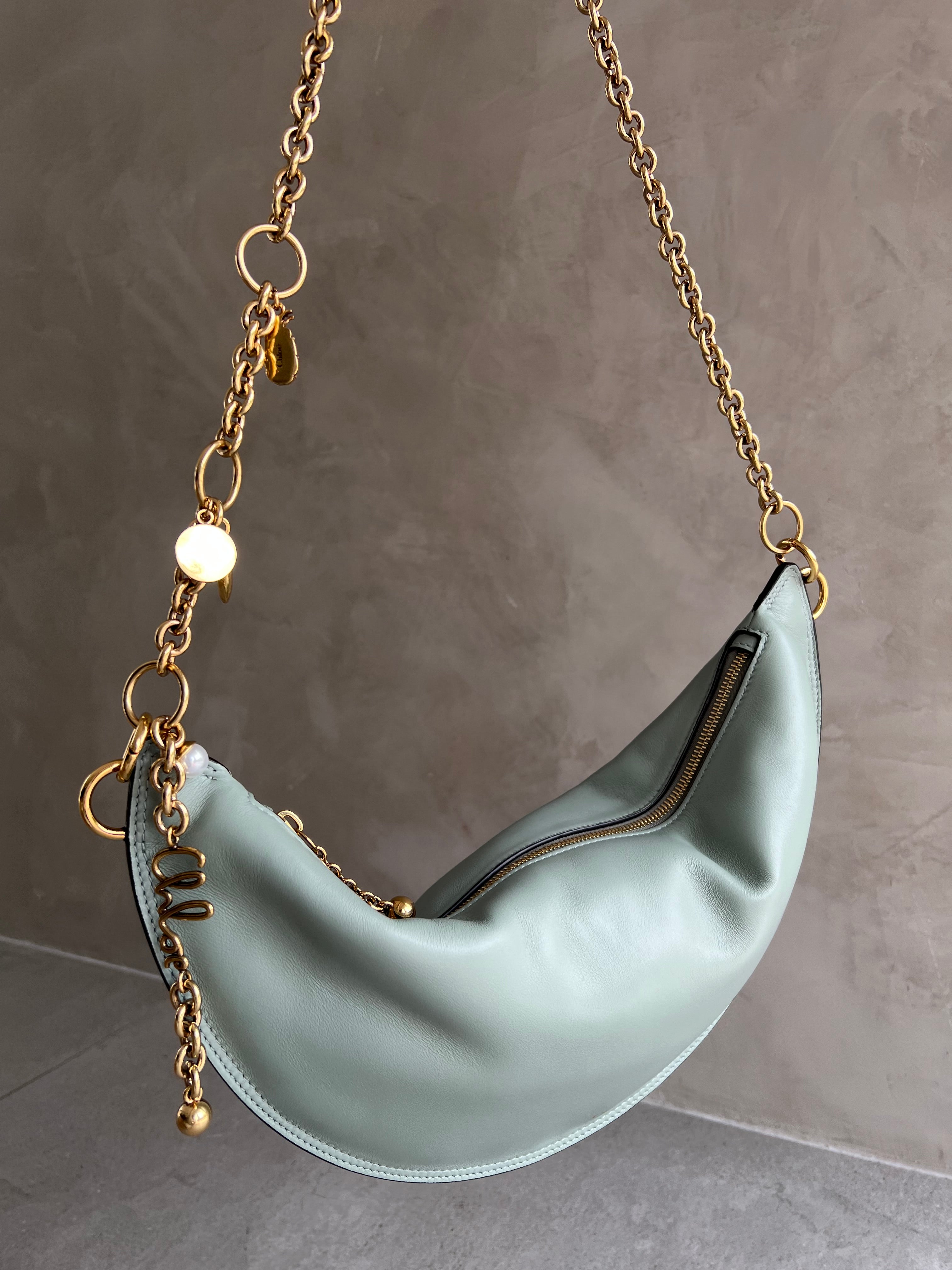 Carry on the shoulder or crossbody, or play with the various rings and hooks on the chain to explore your own way of wearing the bag.