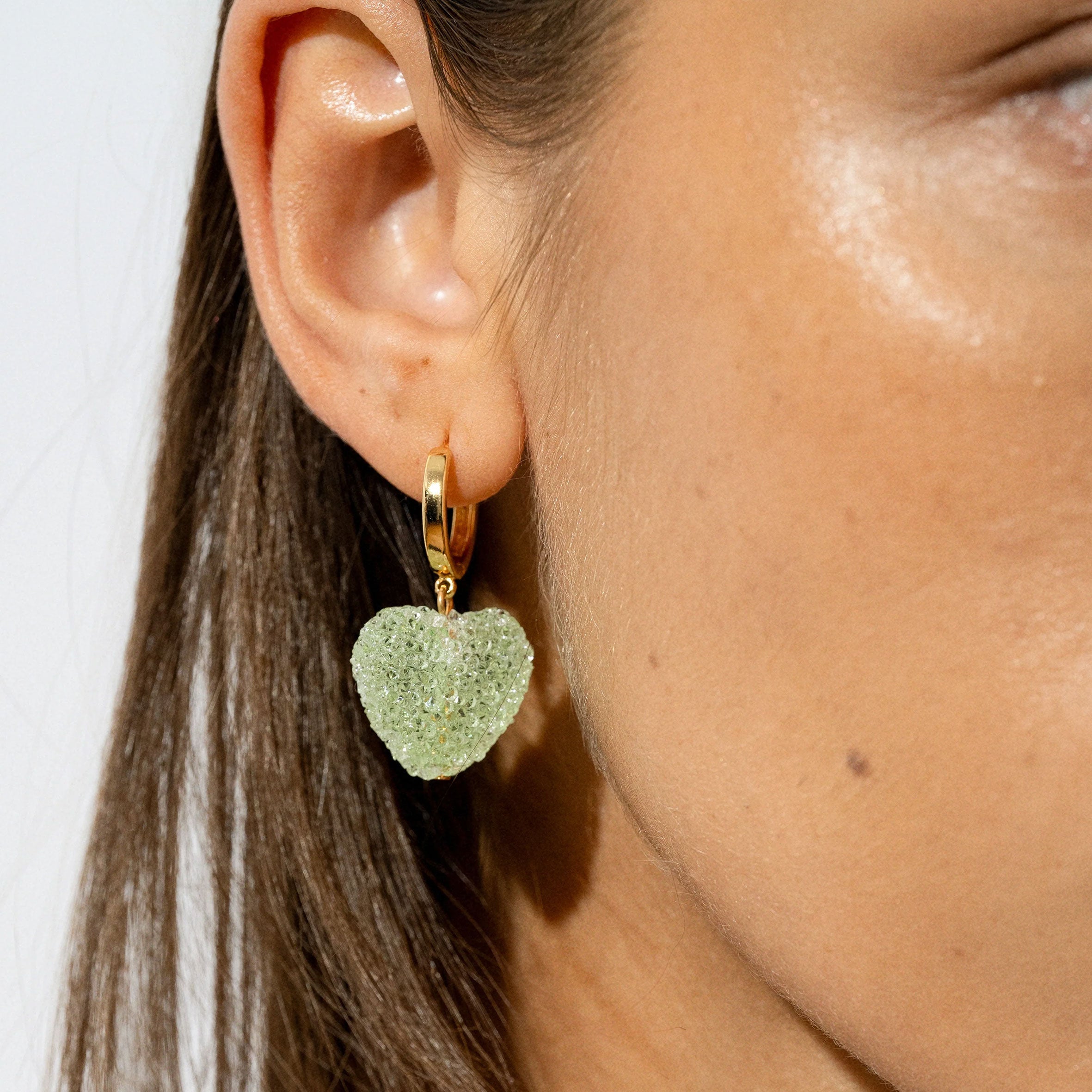 Meet the stylish upgrade from your childhood corner shop’s candy necklaces – introducing the Jelly Heart Hoops! The sugar-coated hearts were created as a nostalgic reminder of edible jewelry of the 90s and 00s and is a fun way to inject some sweet style into your wardrobe.