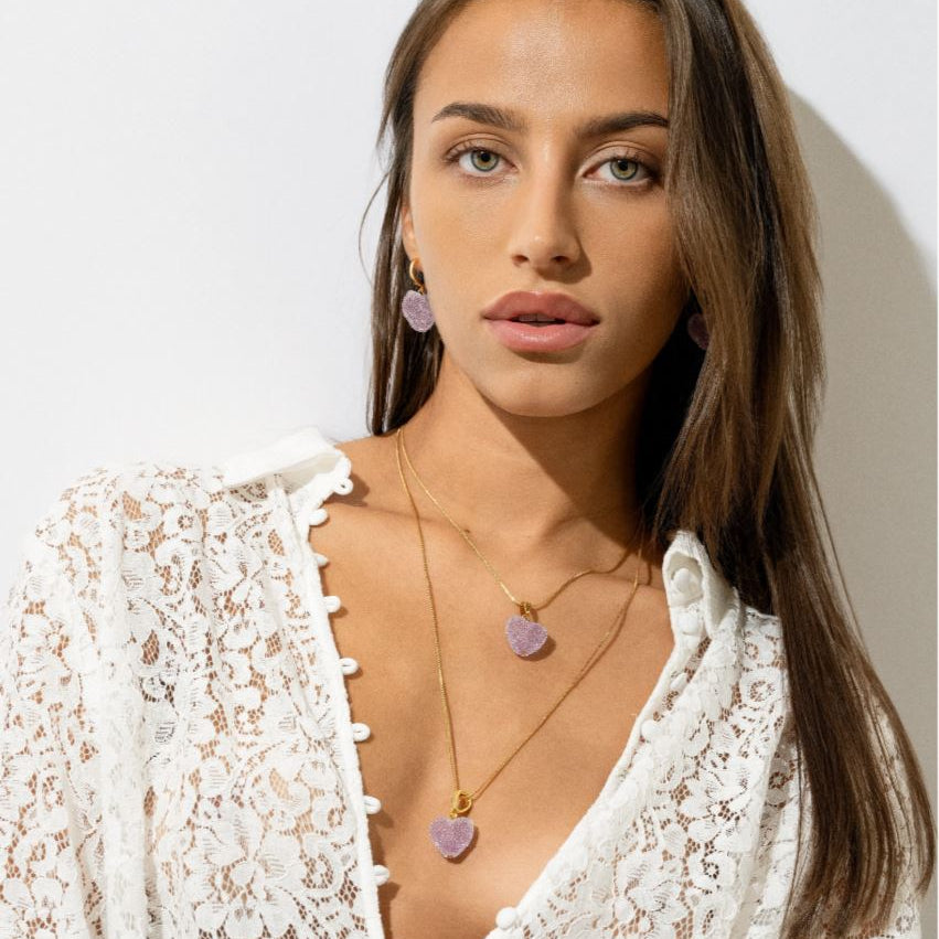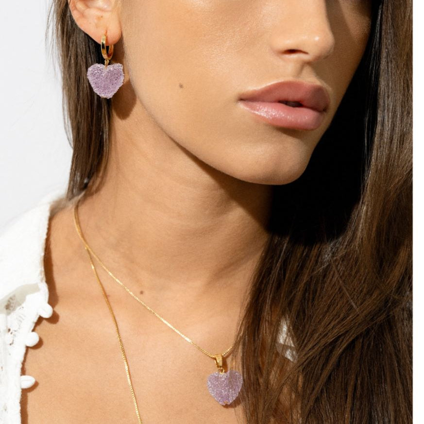 Meet the stylish upgrade from your childhood corner shop’s candy necklaces – introducing the Jelly Heart Hoops! The sugar-coated hearts were created as a nostalgic reminder of edible jewelry of the 90s and 00s and is a fun way to inject some sweet style into your wardrobe.
