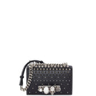 Alexander McQueen's 'Jewelled Satchel' is topped with a signature knuckleduster that's embellished with the label's iconic crystal-encrusted skulls. Made from black leather, it's decorated with scores of studs and suspended from a chunky chain strap. The interior is divided to organize all your essentials, and has a secure zipped pocket.
