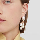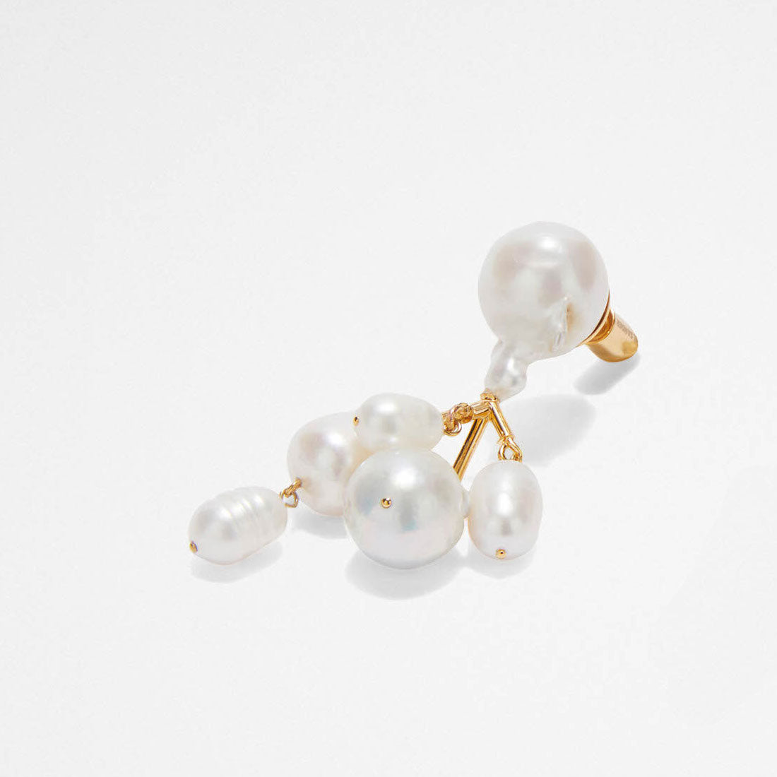 Handcrafted brass earrings with freshwater pearl pendants with stud closure.