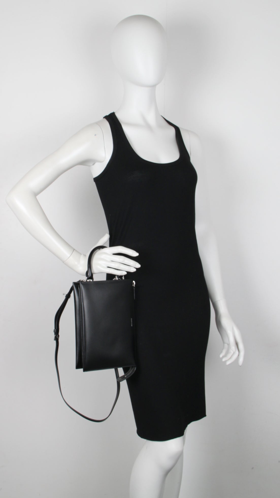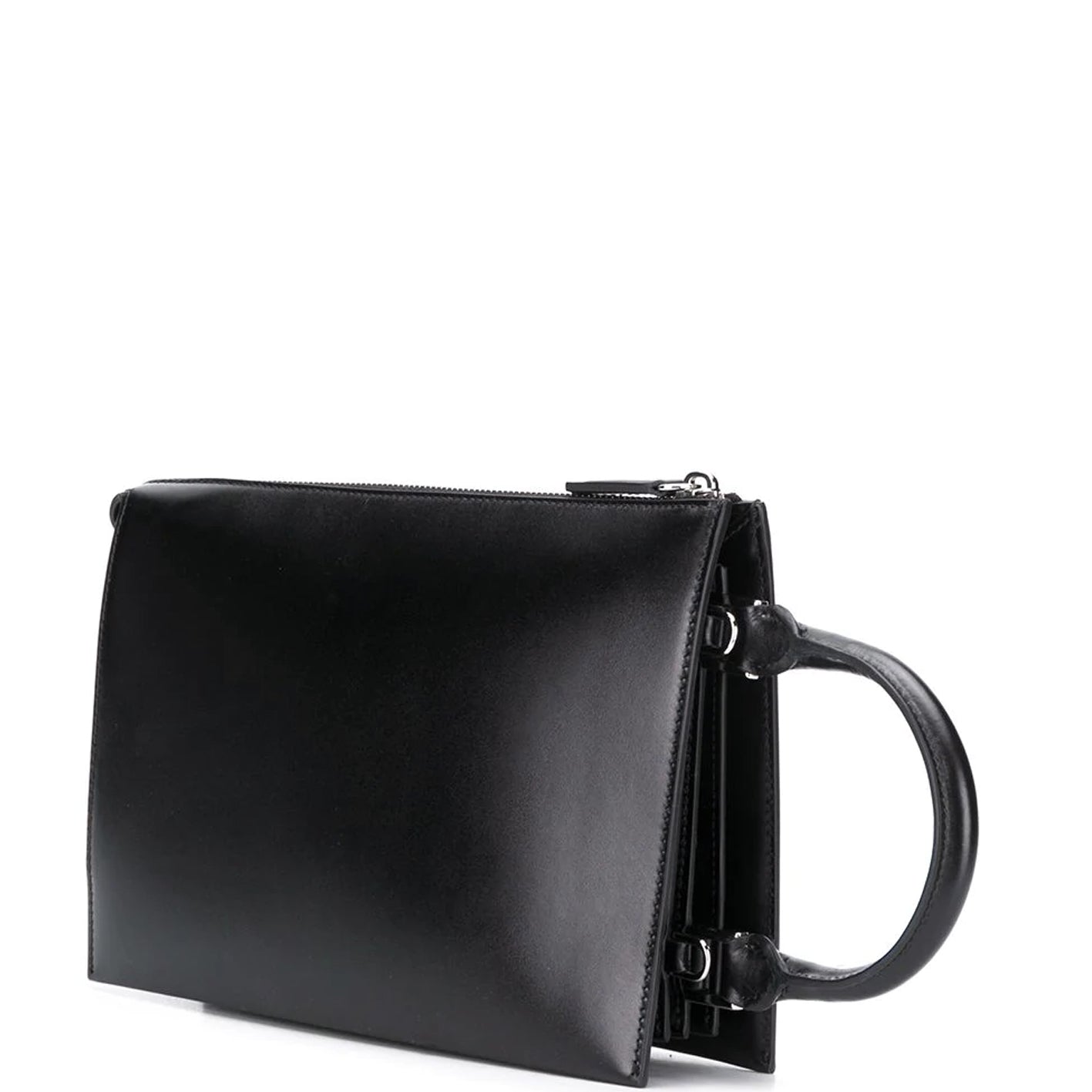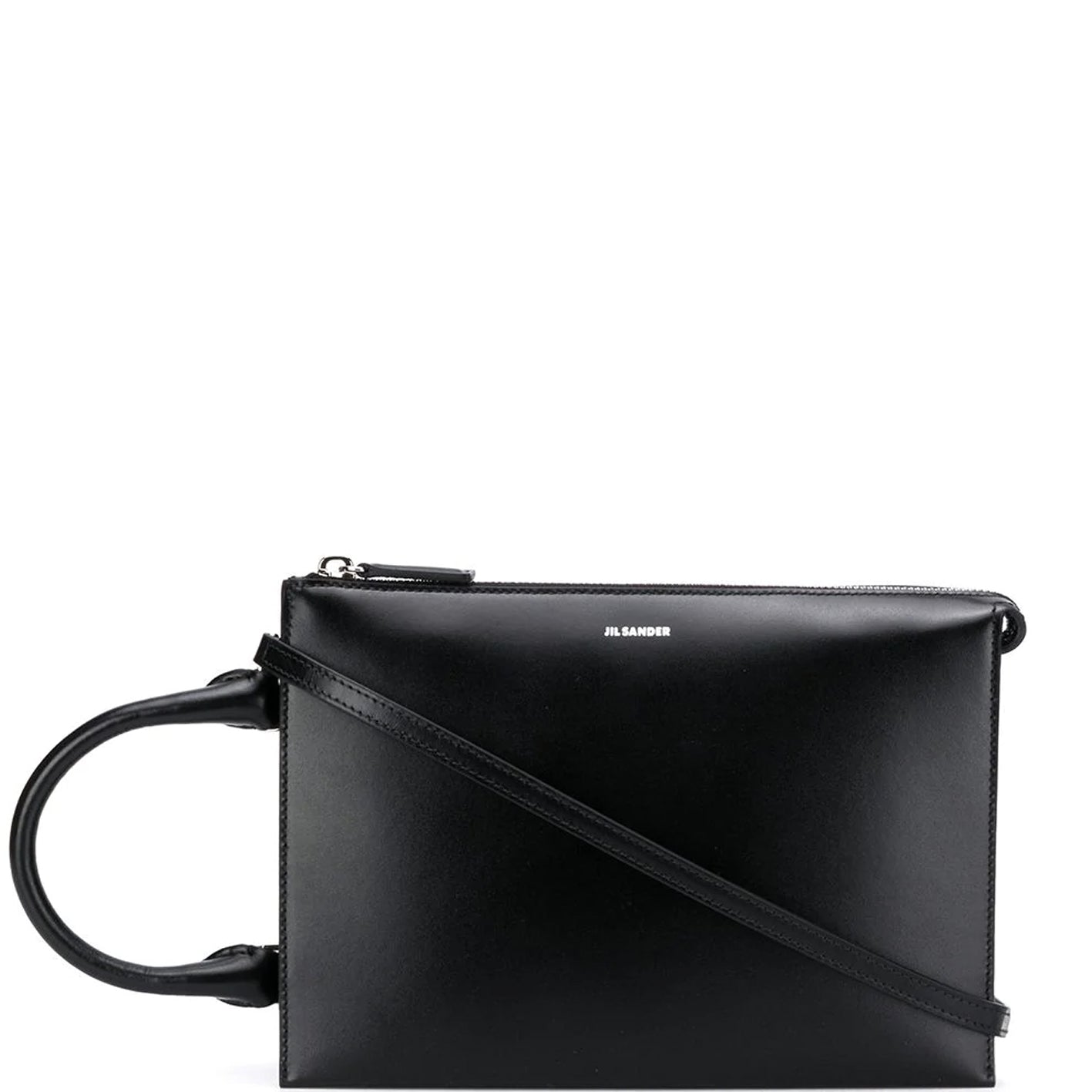 Small leather crossbody and clutch bag with multiple compartments, detachable and adjustable shoulder strap and a foil embossed Jil Sander logo. Features a leather handle, and includes three internal compartments, a zip closure and a nappa lining.