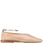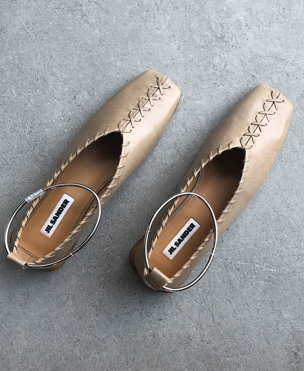 Square toe, leather ballerinas featuring stitching details and a detachable metal ankle bracelet