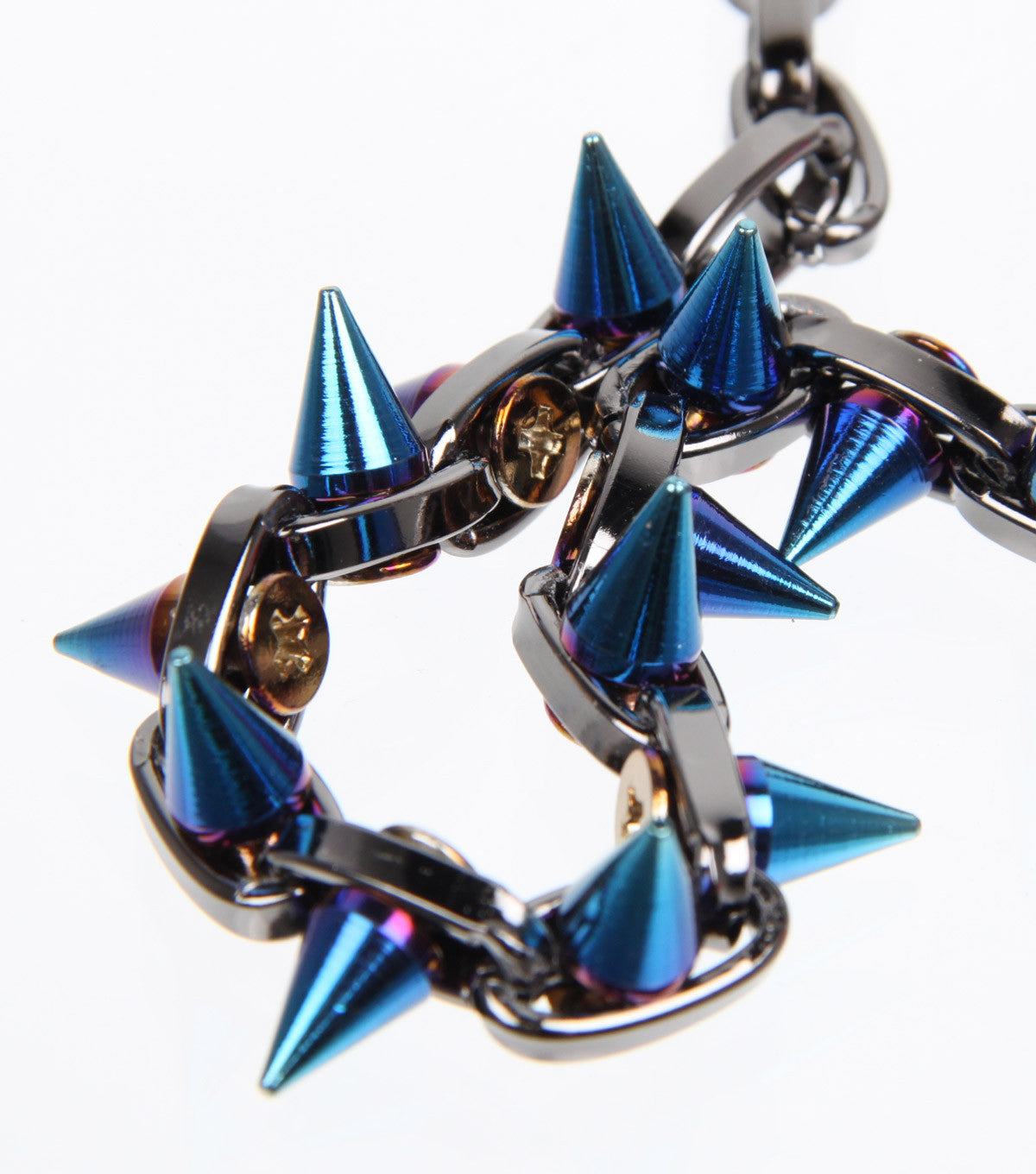 Joomi Lim brass chain dipped in hematite. 1/2" Brass spike dipped in Cosmic Blue . Adjustable necklace length 14-16