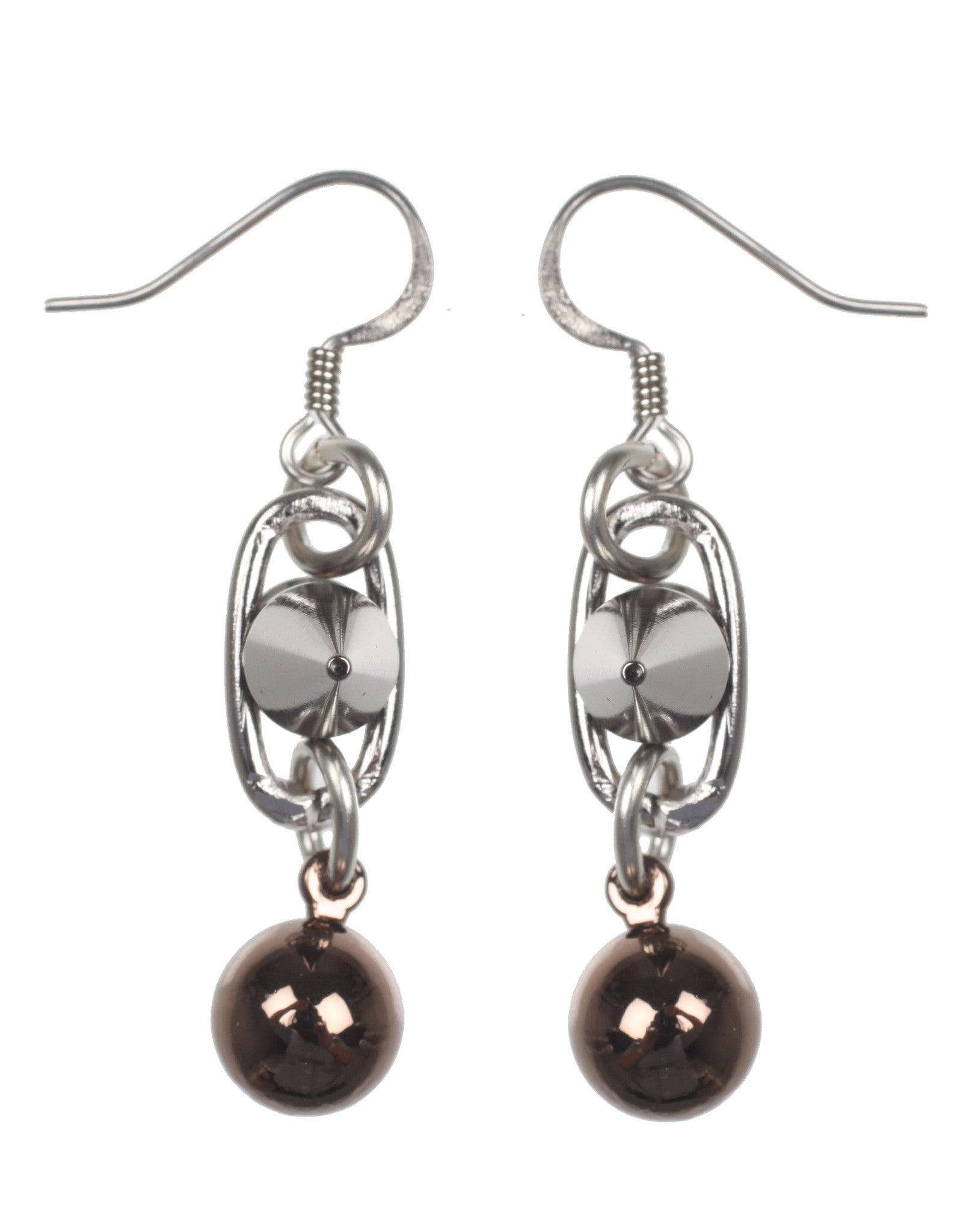 Spike & Sphere Earrings, Rhodium/Brown/Ruthenium