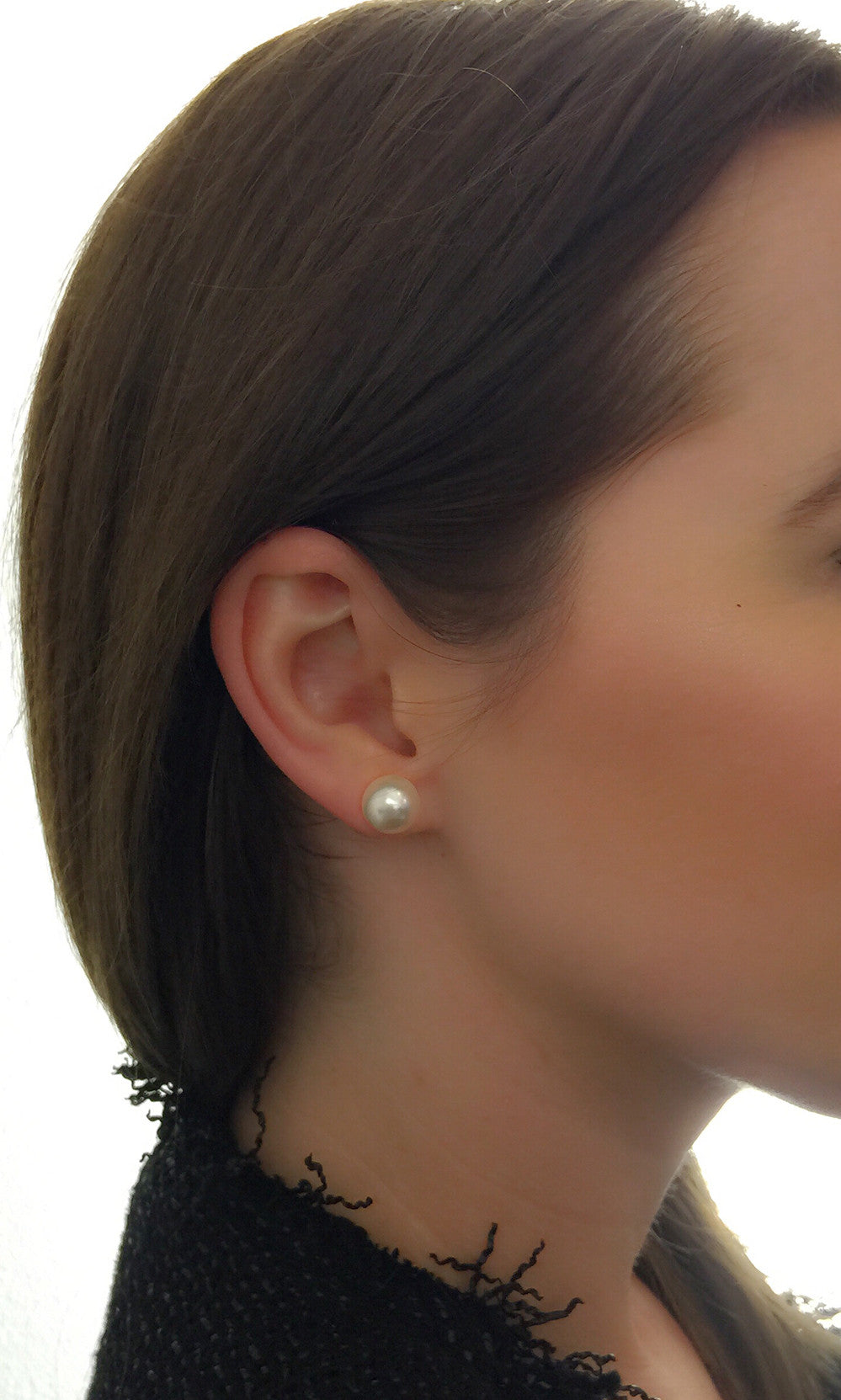 Stud Earrings w/floating pearl, Rose Gold
