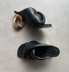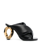 JW Anderson sandals with puffy twisted leather upper Mule with the beautiful iconic JW Anderson gold-tone chain heel, adding a touch of glamour. These slip-on mules are versatile and perfect for any occasion, combining style and comfort effortlessly.