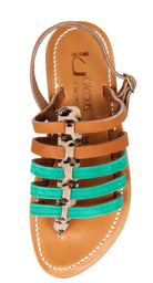 Calf Hair with leopard Print with contrasting green Suede leather on straps.