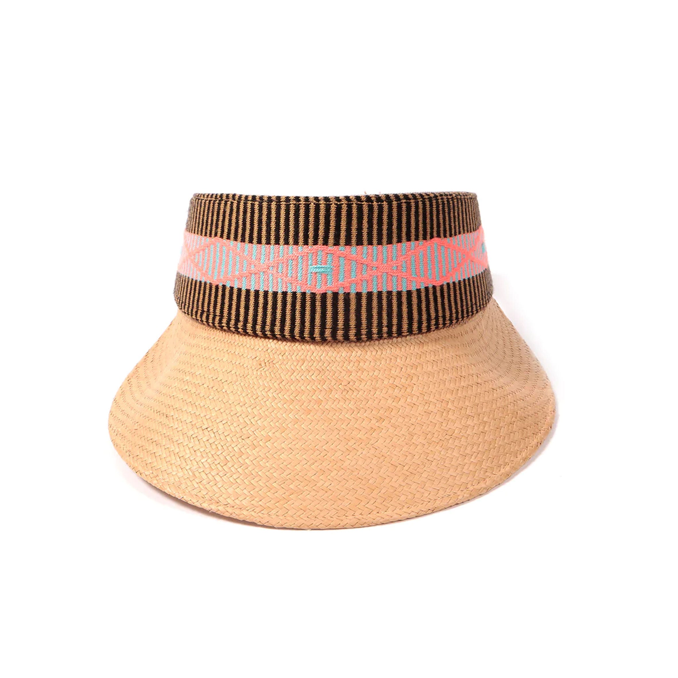 The Kenia Visor is expertly handwoven from Iraka Straw and features an embroidered multicoloured ribbon. Each piece takes up to 10 hours to hand weave by artisans in Latin America.