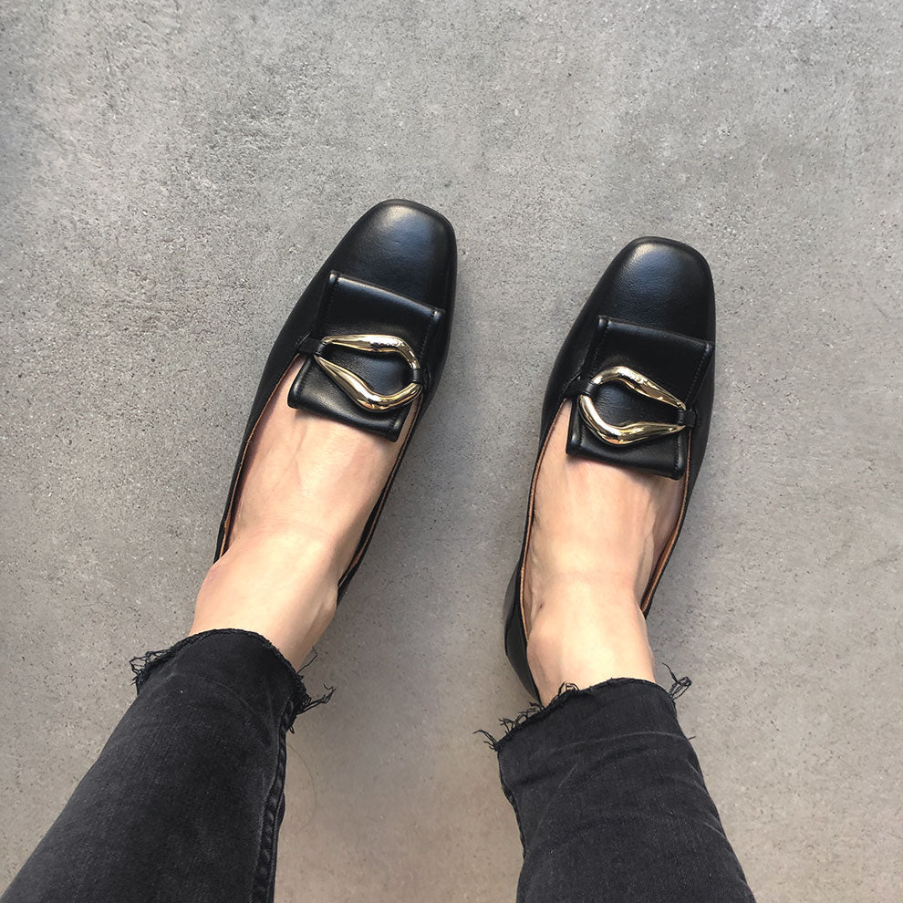 Featuring the Maison’s new "Kiss" detail features a streamlined shape defined by curving, sculptural hardware. The small heel and thin leather sole combine comfort with elegance, while the layered upper and black edges add a masculine twist to these effortless loafers for ladies.KISS loafers from Chloé. This black leather pair has collapsible heel counters, allowing them to be styled as mules if you'd prefer to go backless.
