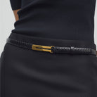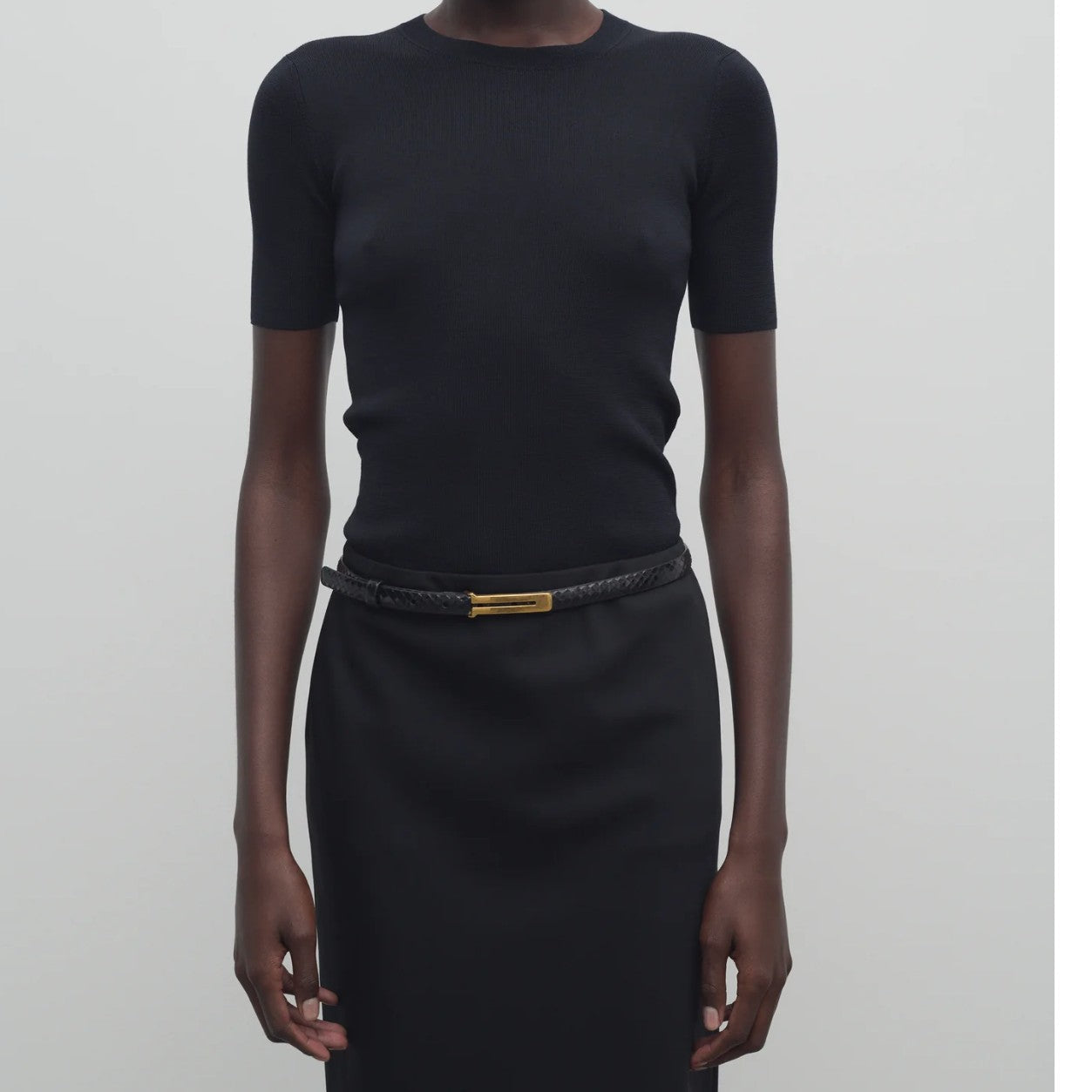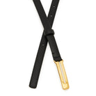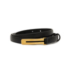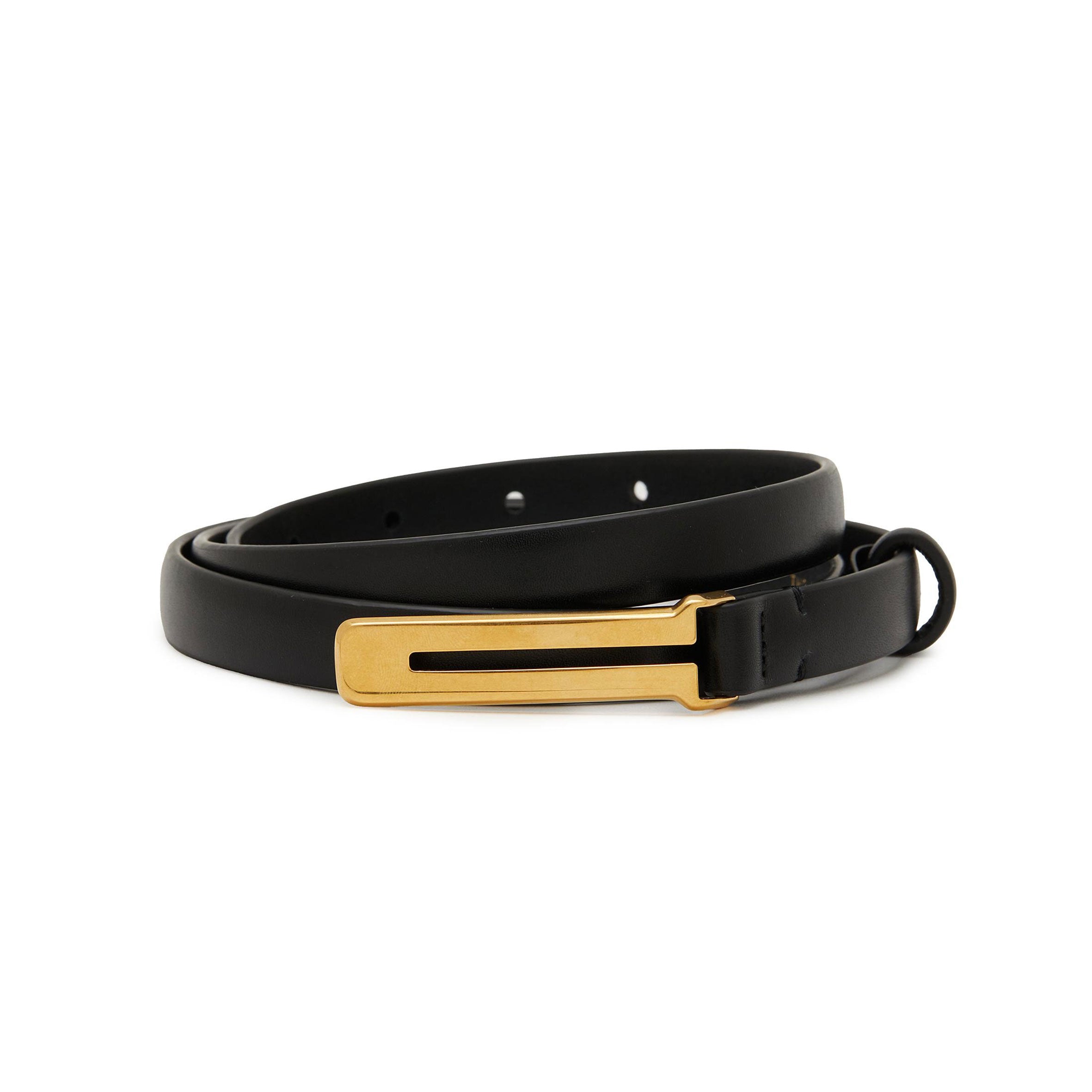 Slim belt in smooth leather with metal buckle and fixed loop.