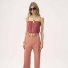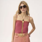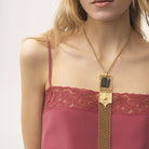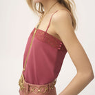Fluid camisole top in organic silk crêpe de chine, featuring thin straps and lace inserts along the neckline.