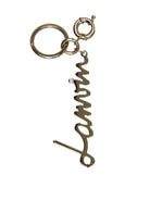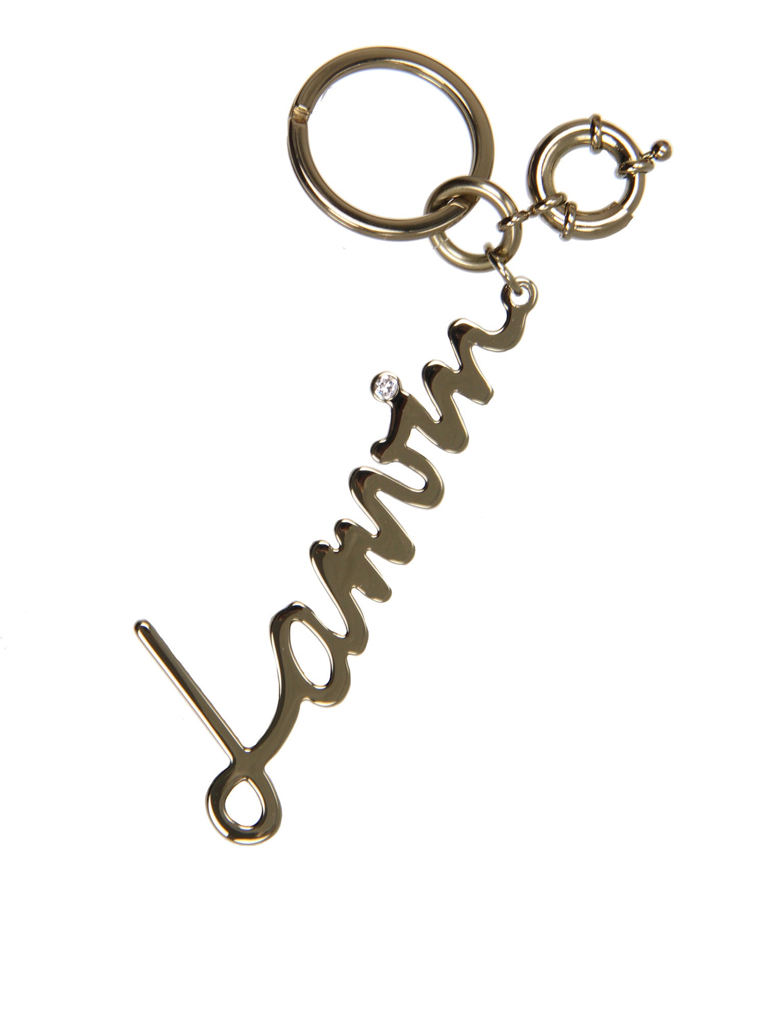 An extension of their word necklaces, this season Lanvin has added bags charms so that you can now adorn your bags in the same way. Lanvin's glossy gold-tone bag charm spells out the word 'Lanvin' with a crystal dot on the "i". Lobster Clasp fastening. Comes in a presentation box.