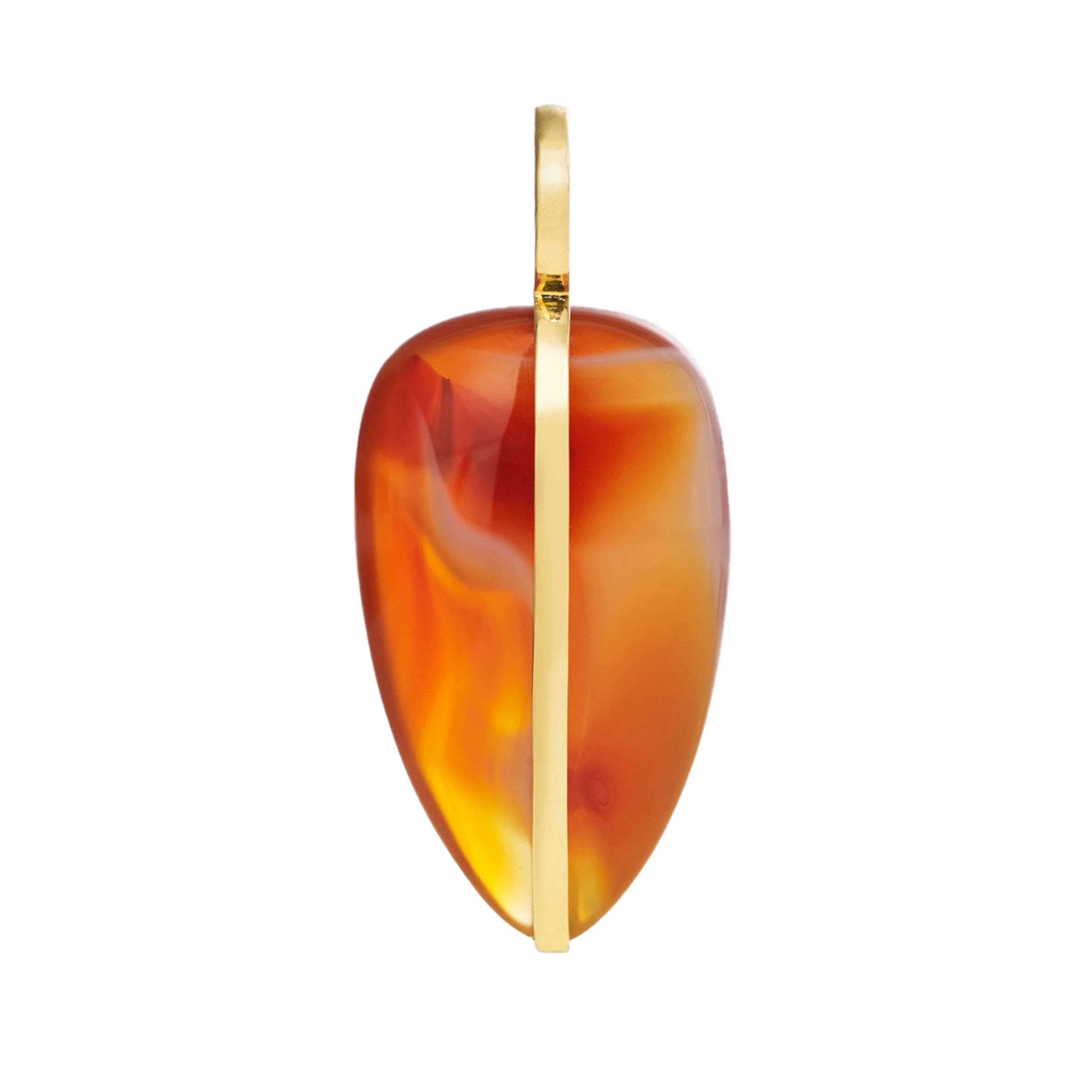 Sculptural Pendant carved from a single piece of Red Carnelian, set in 14K recycled yellow gold.