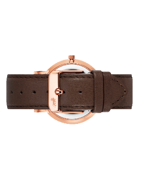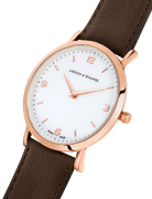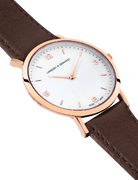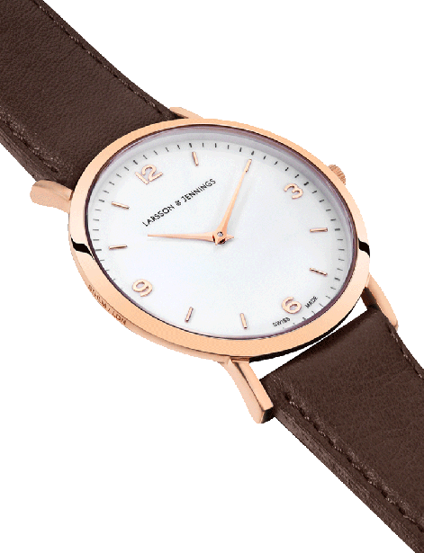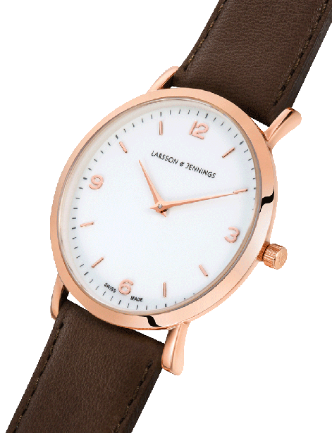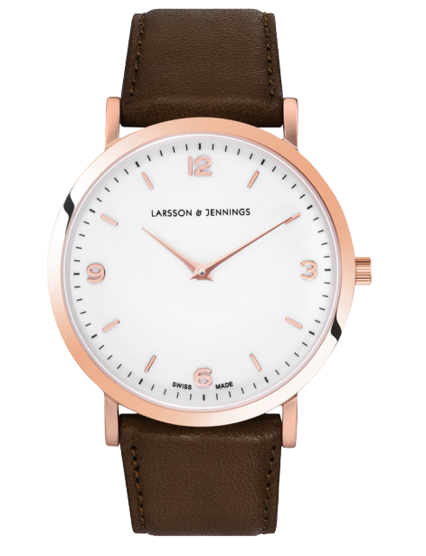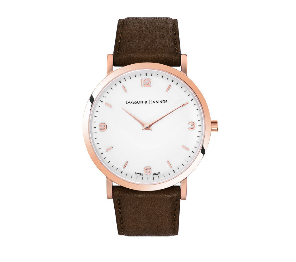 Larsson & Jennings 38mm rose gold casing meets brown leather for a contemporary yet classic option.