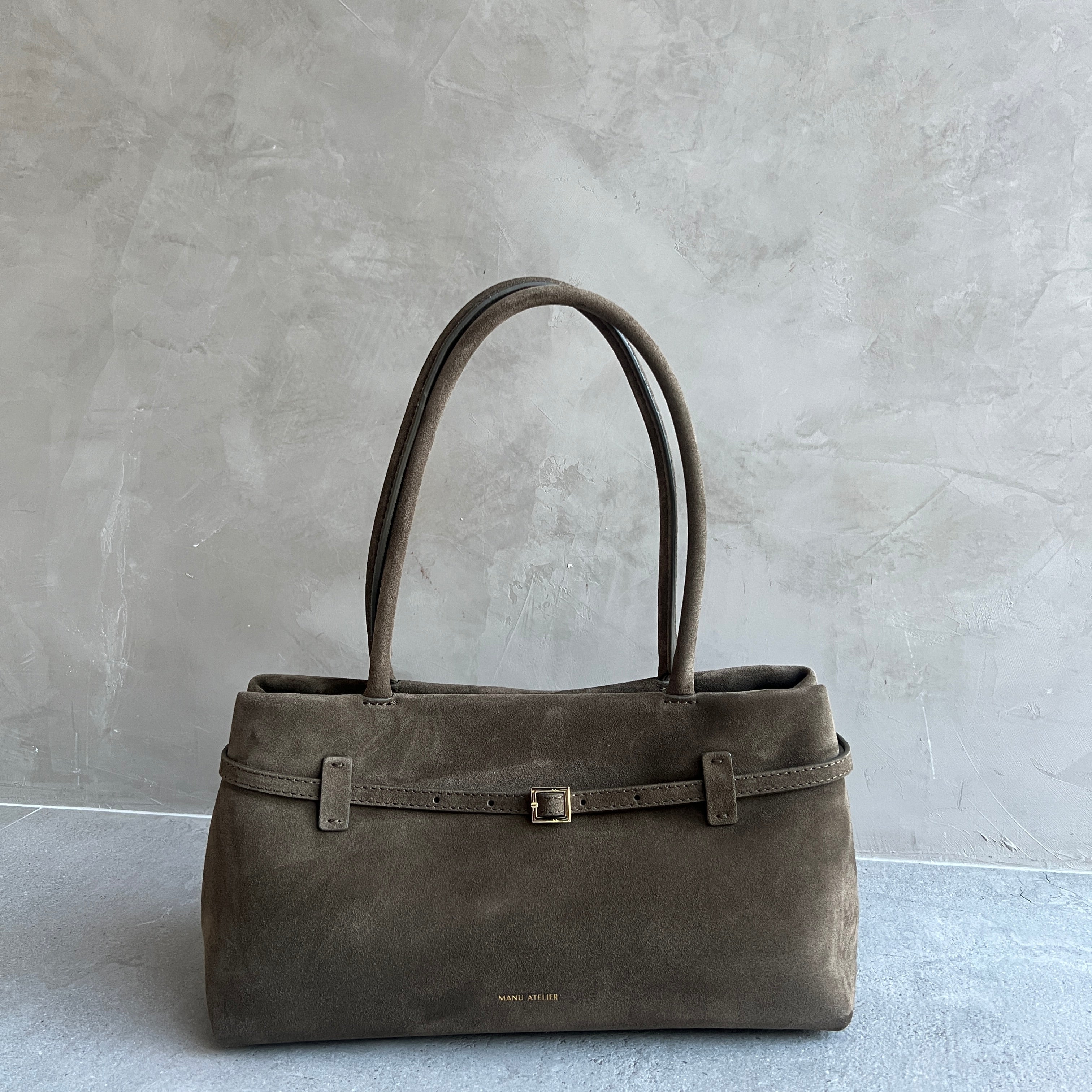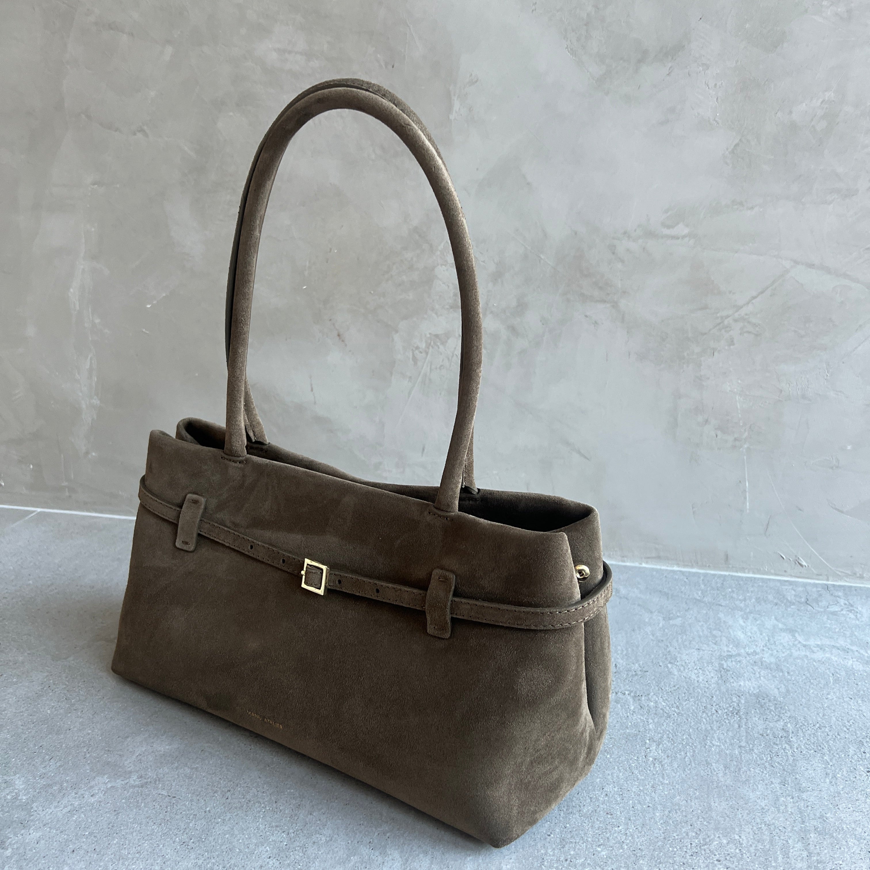 Interior zipped pocket with a Manu Atelier embossed logo