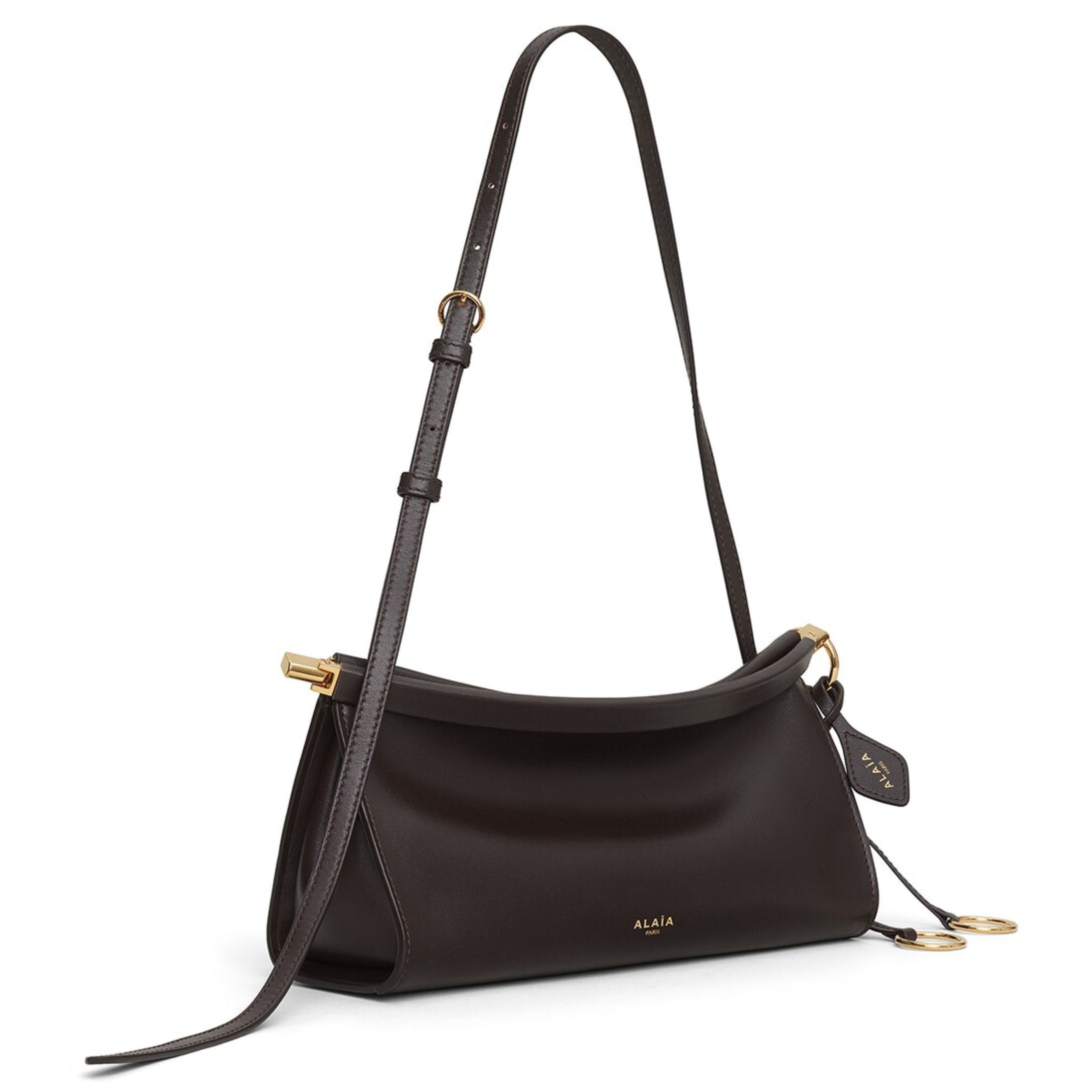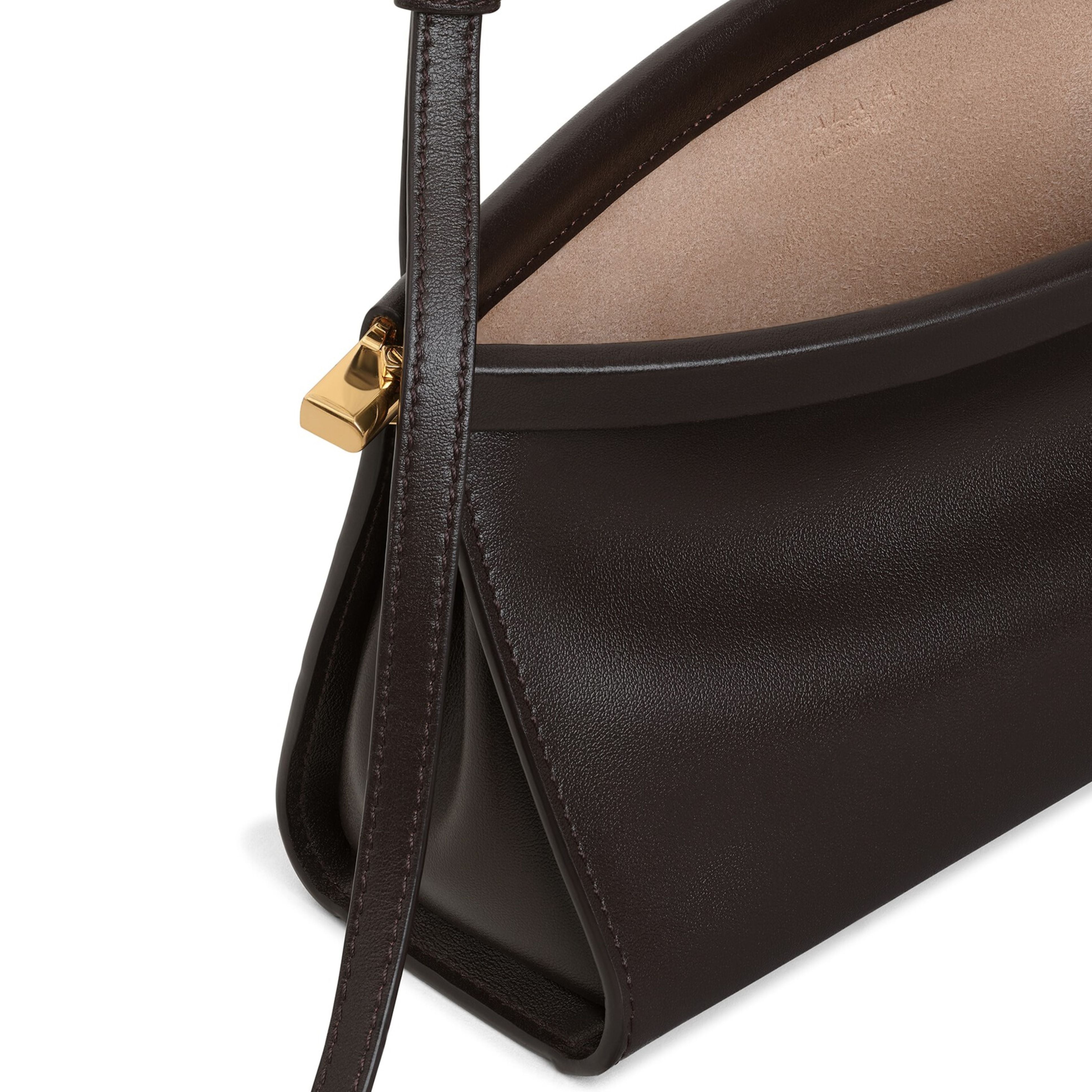 Small East West curved bag in a soft feel calfskin leather. The bag that hugs the body and features a hinge opening system wrapped with leather signature folding detail on the bottom of the bag. Designed for shoulder or waist carry thanks to an adjustable strap.