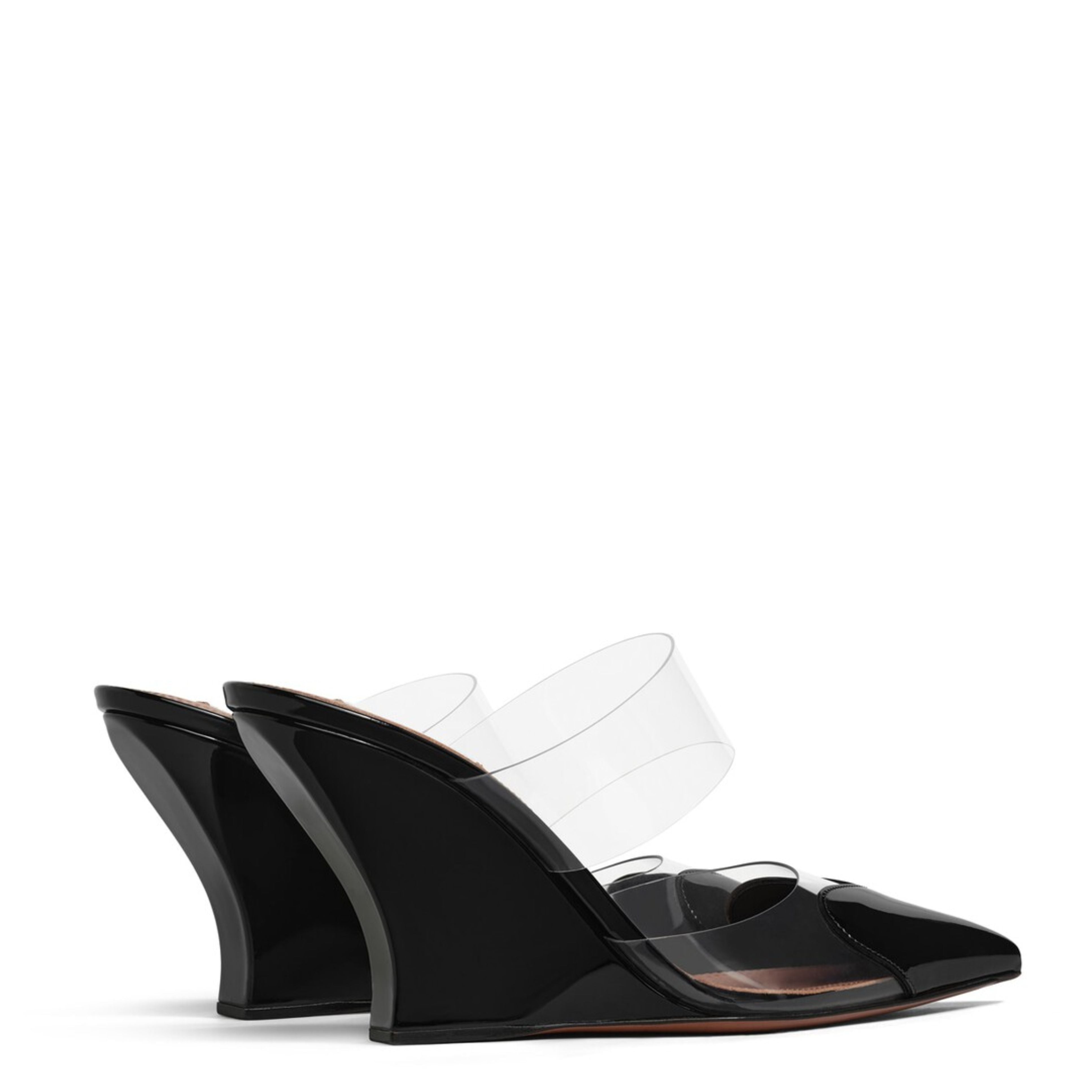 Introducing Alaïa's Heel Heart Wedge – where style meets romance. These shoes feature a captivating heart cut at the front, adding a touch of love to your every step. Crafted with Alaïa's signature attention to detail and quality, these mules redefine elegance.