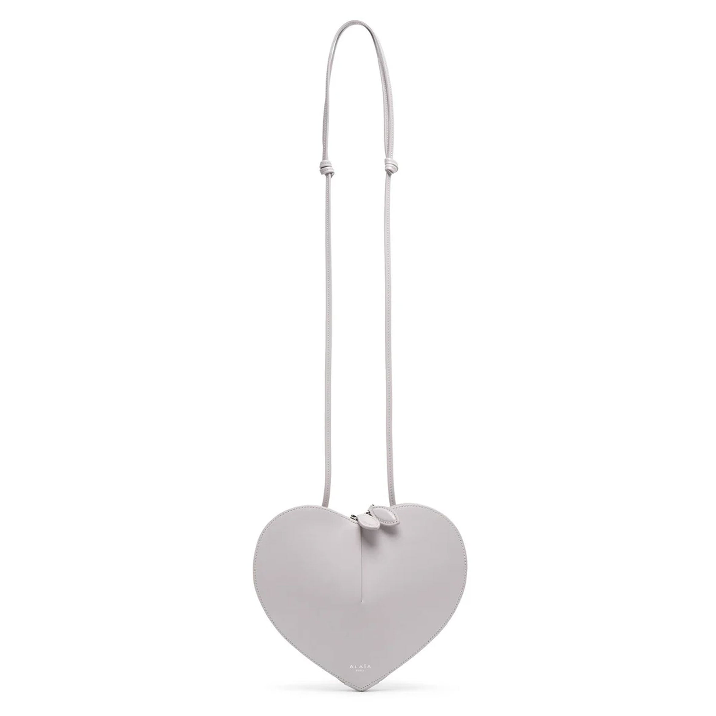 The iconic heart-shaped bag of the Alaïa Maison. Crafted in premium italian calfskin, featuring a zip pouch, an adjustable strap and silver logo detailing.