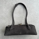 'Le Teckel' (or "Dachshund" in French) has an elongated body made from structured leather with luggage-inspired top handles and a moniker-stamped hangtag.