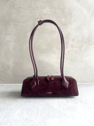 'Le Teckel' (or "Dachshund" in French) has an elongated body made from structured leather with luggage-inspired top handles and a moniker-stamped hangtag. Features a double zip closure and a small mirror.