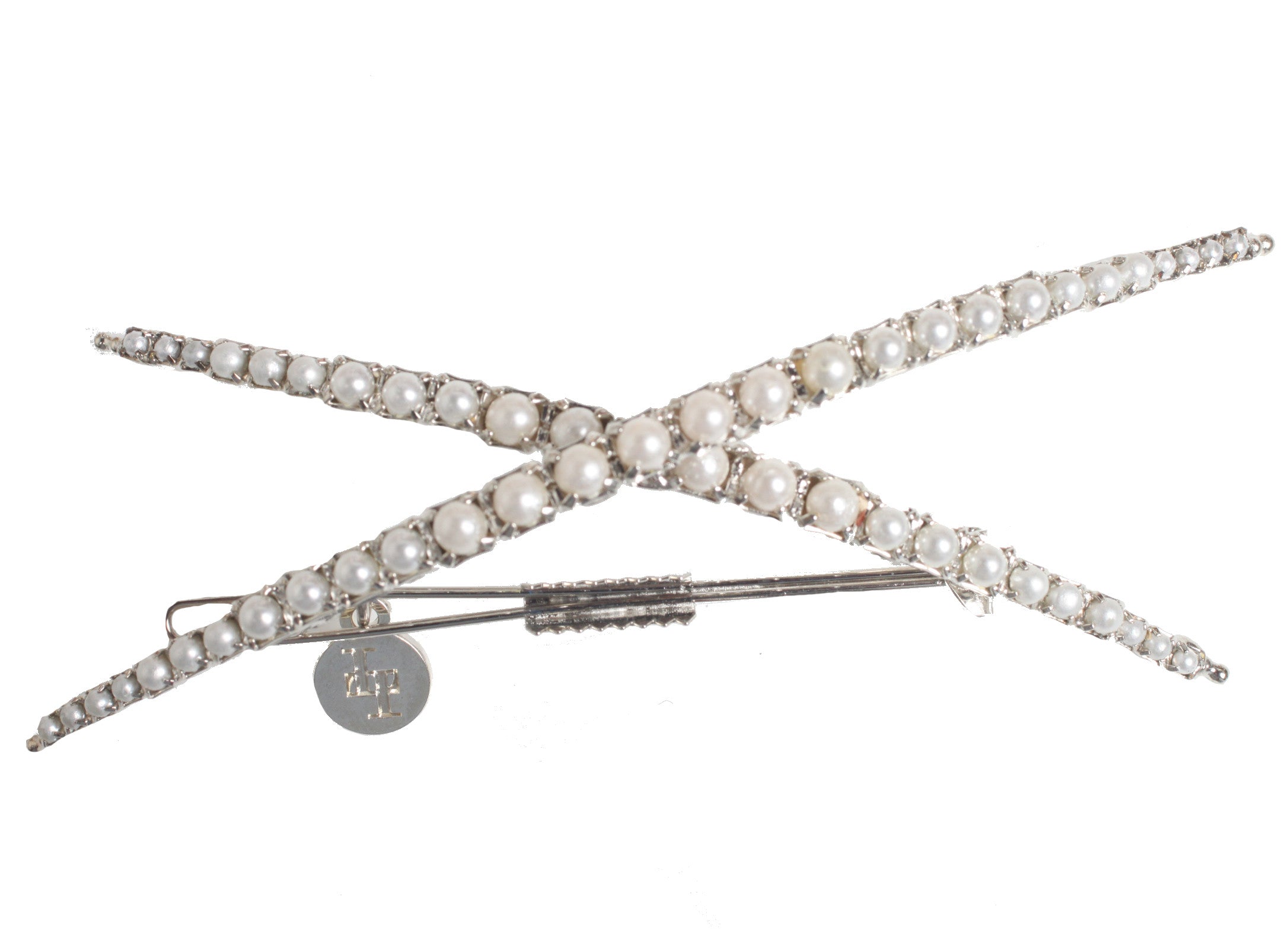 LELET NY Exes Pearl Barrette in Rhodium with faux pearl accents.