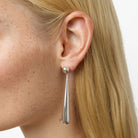 The Louise Earrings are made from sterling silver, and feature a stud earring with an oblong drop shaped pendant.